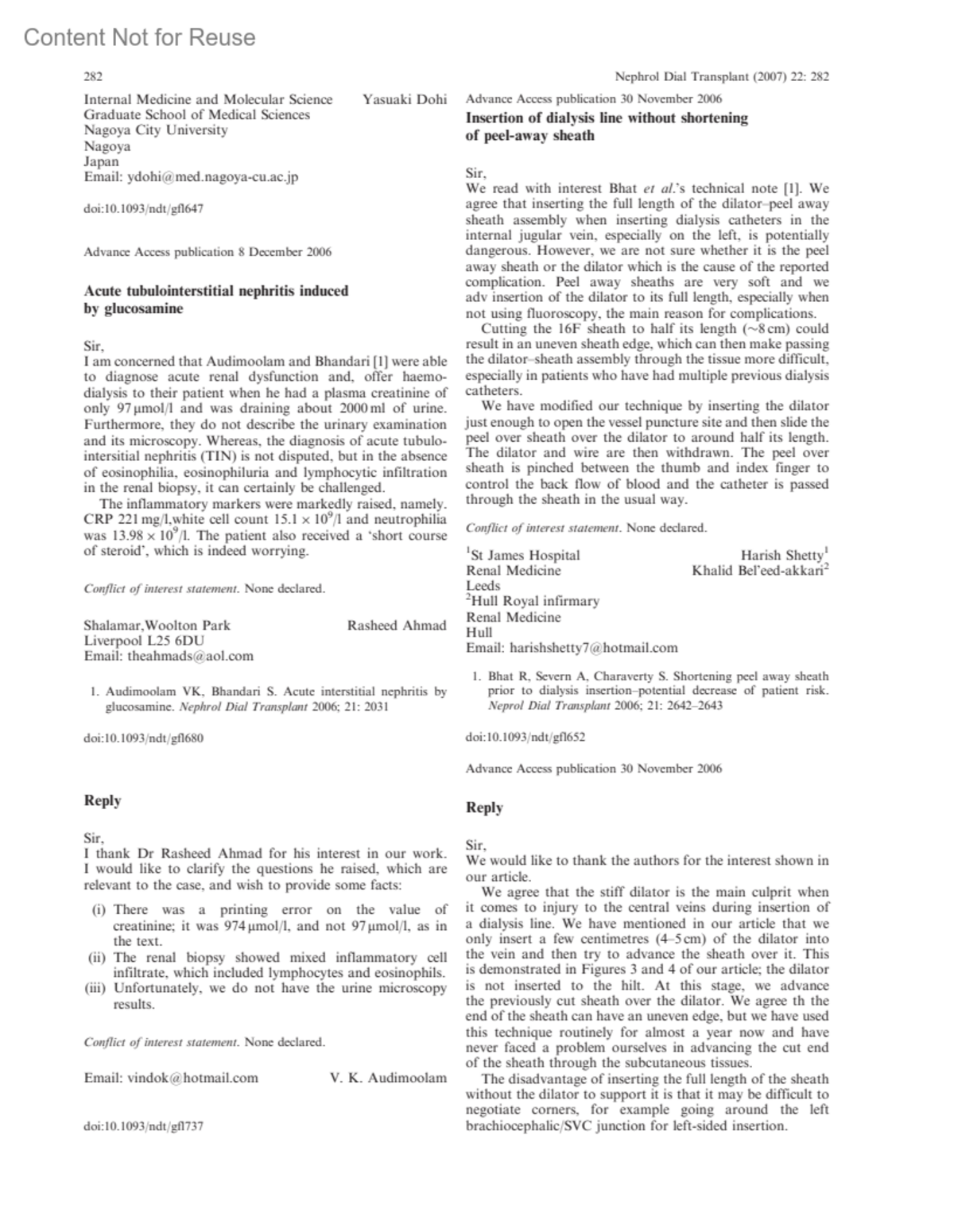 Nephrology Dialysis Transplantation 22(1):p 282, January 2007.