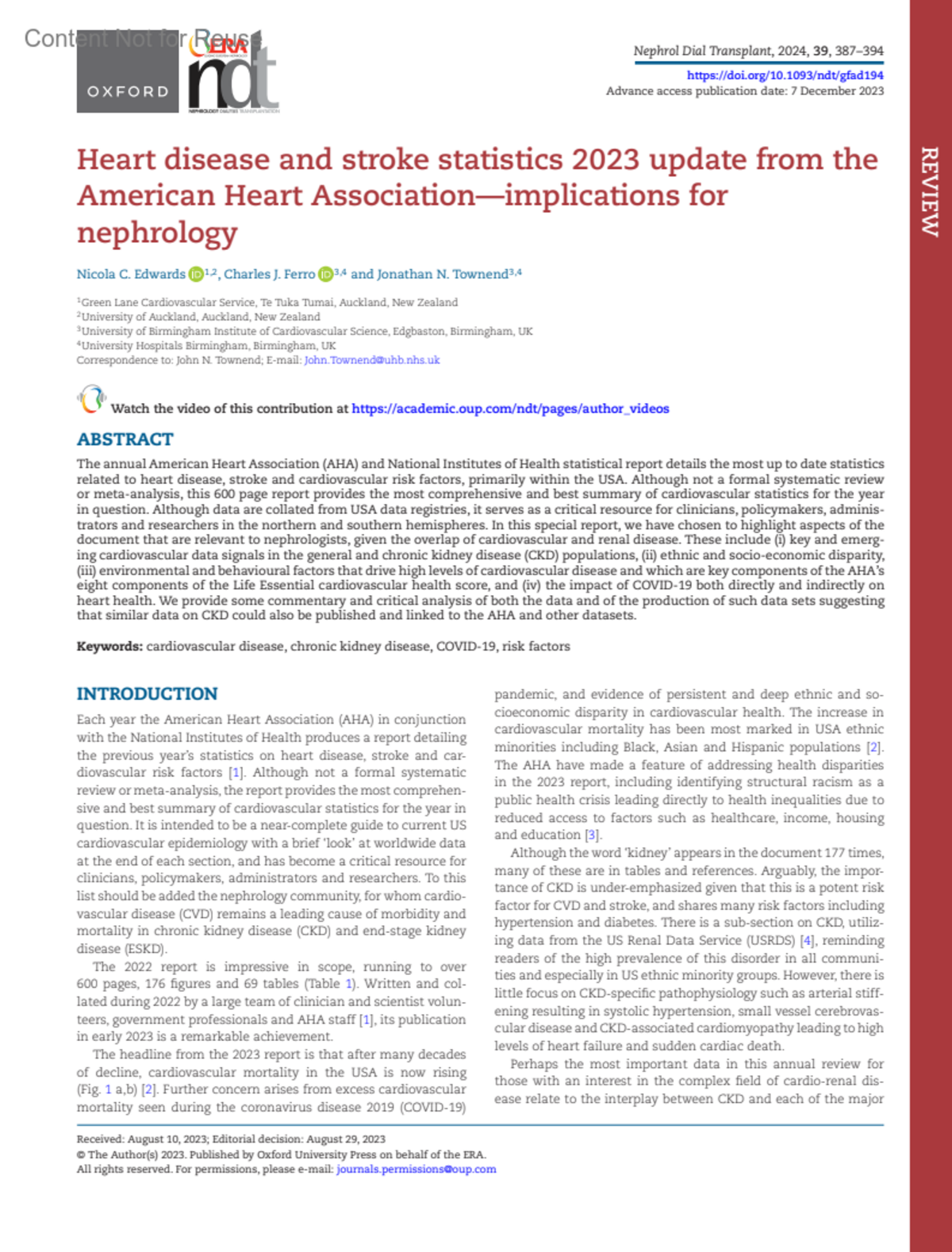 Heart disease and stroke statistics 2023 update from the American Heart Association—implications for nephrology