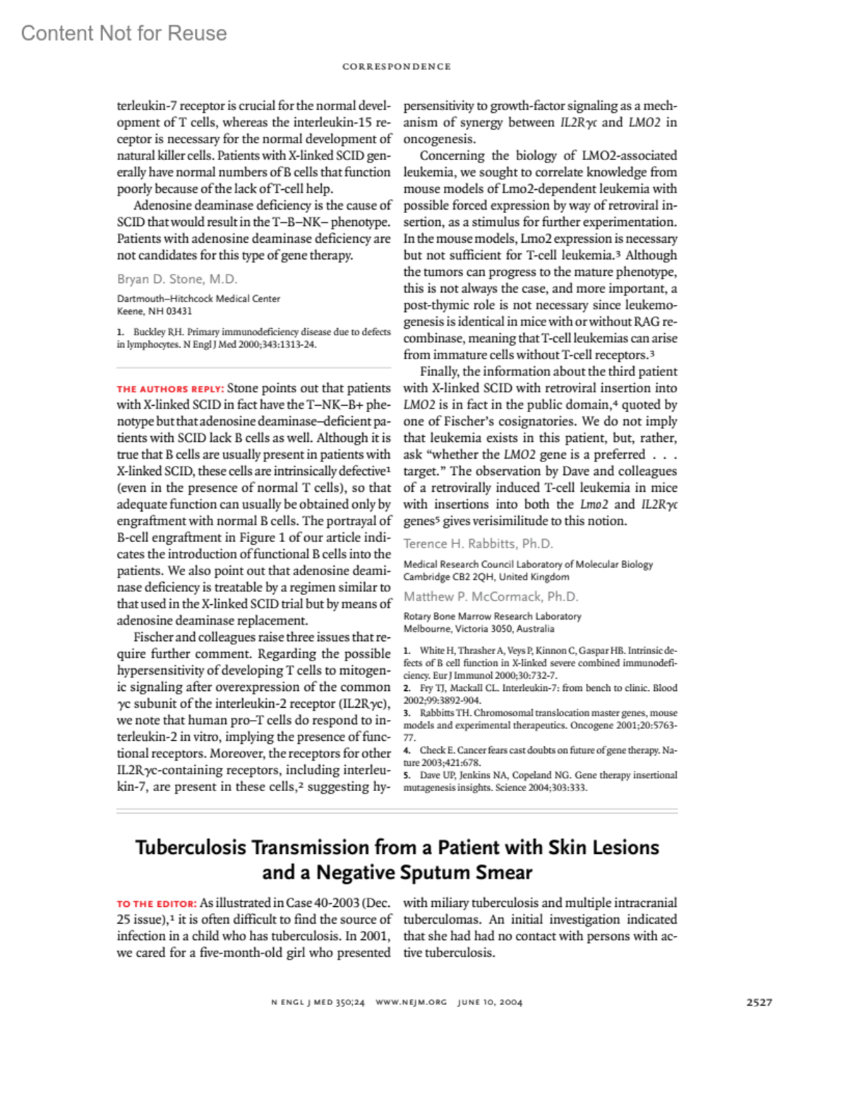 New England Journal of Medicine 350(24):p 2527, June 10, 2004.