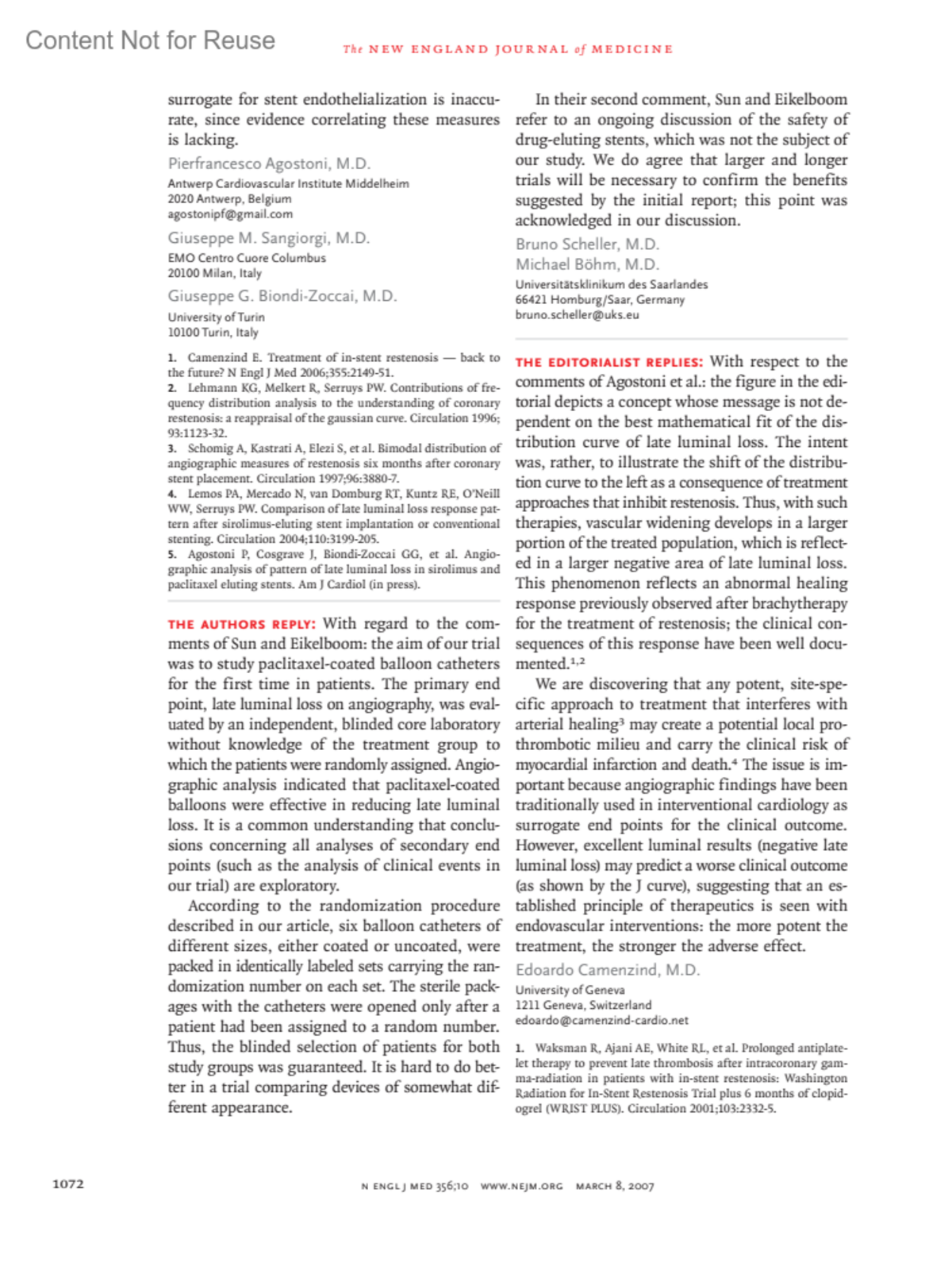 New England Journal of Medicine 356(10):p 1072, March 8, 2007.