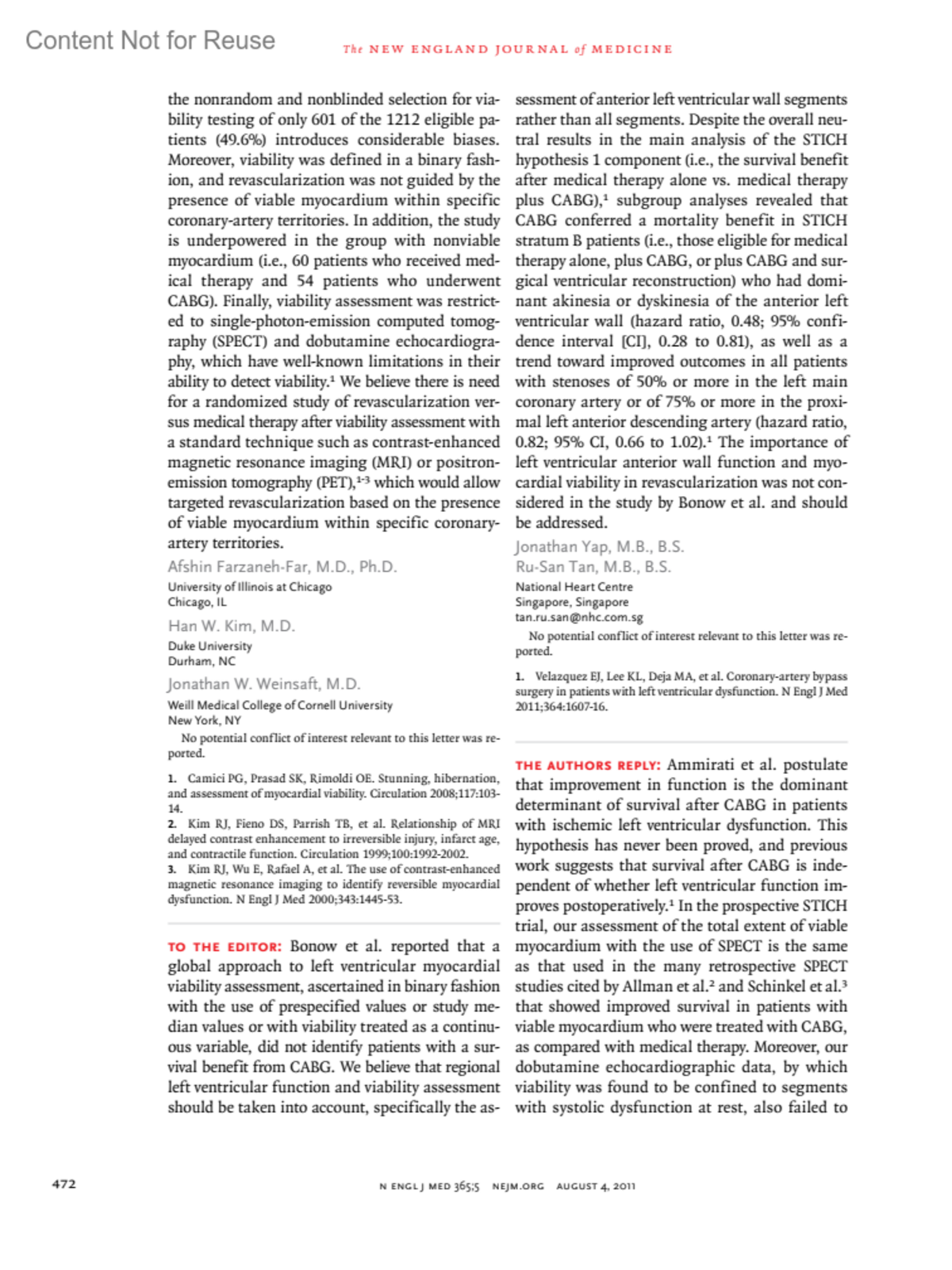 New England Journal of Medicine 365(5):p 472-473, August 4, 2011.
