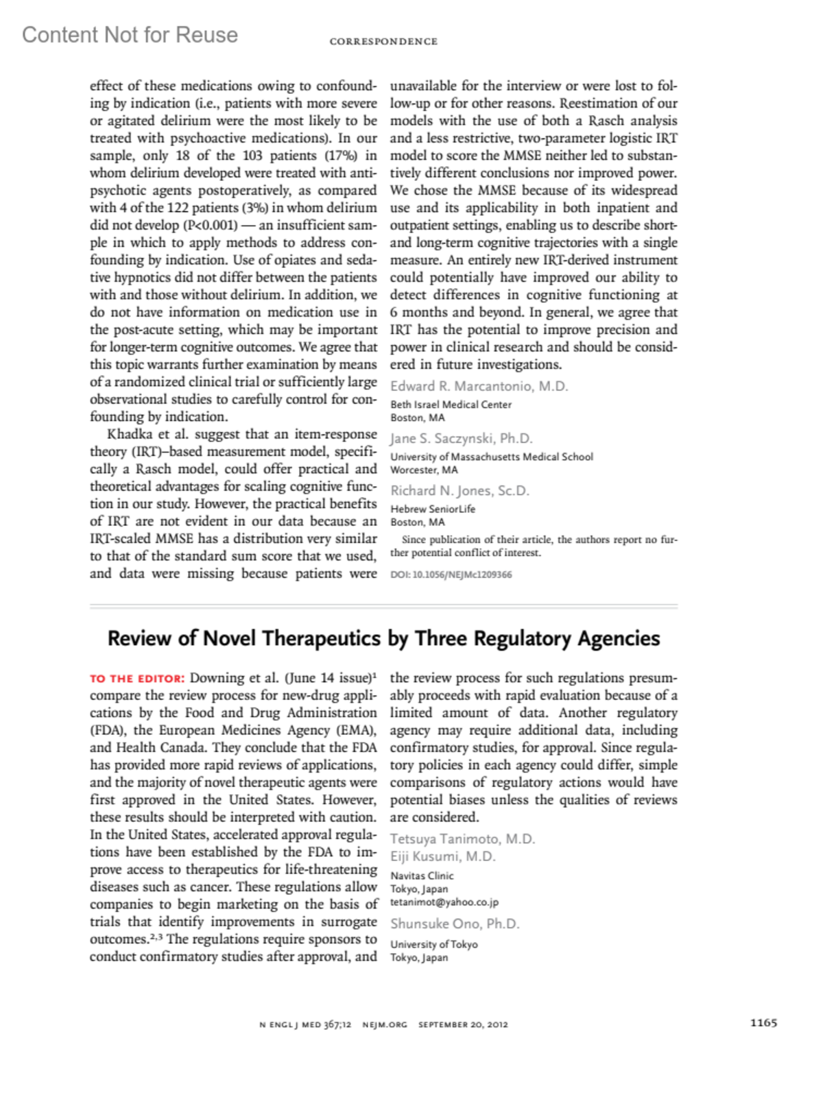 New England Journal of Medicine 367(12):p 1166-1167, September 20, 2012.