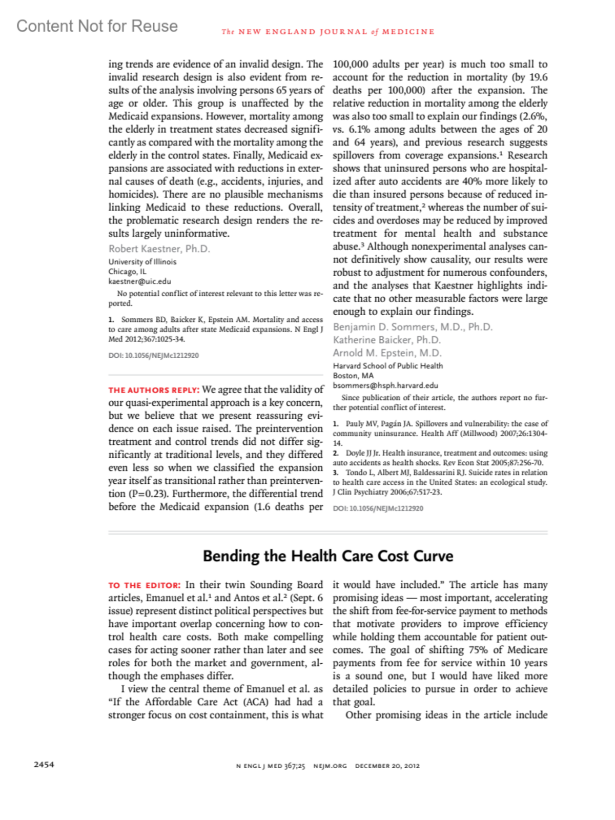 New England Journal of Medicine 367(25):p 2454, December 20, 2012.