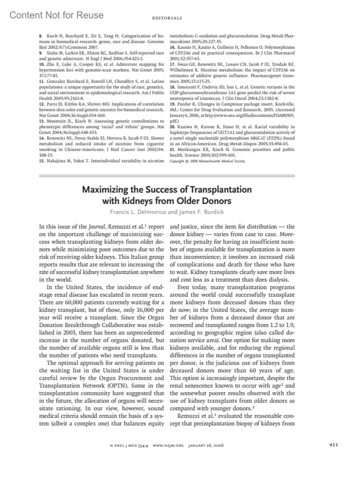 New England Journal of Medicine 354(4):p 411-413, January 26, 2006. | DOI: 10.1056/NEJMe058277