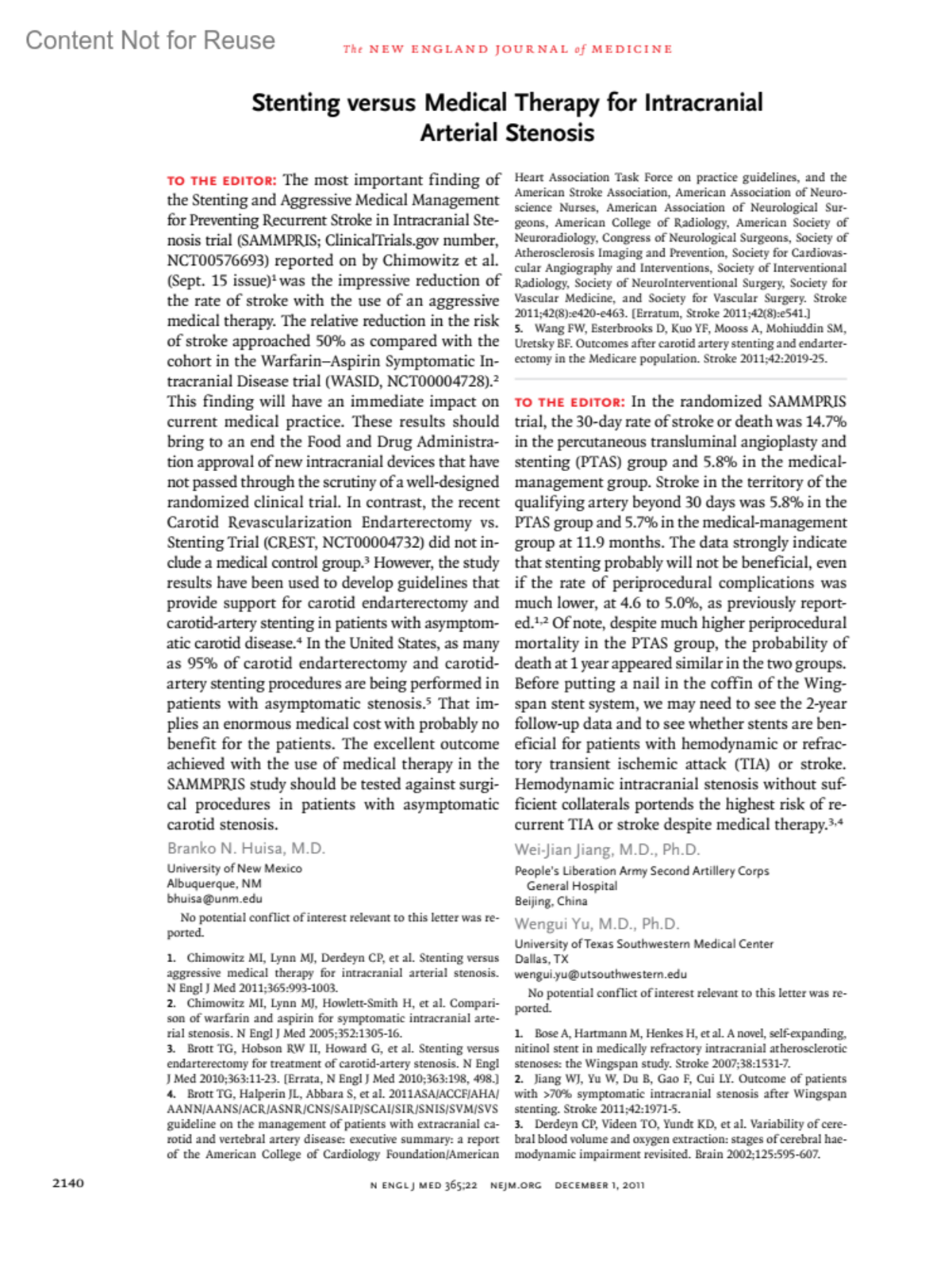 New England Journal of Medicine 365(22):p 2140-2141, December 1, 2011.