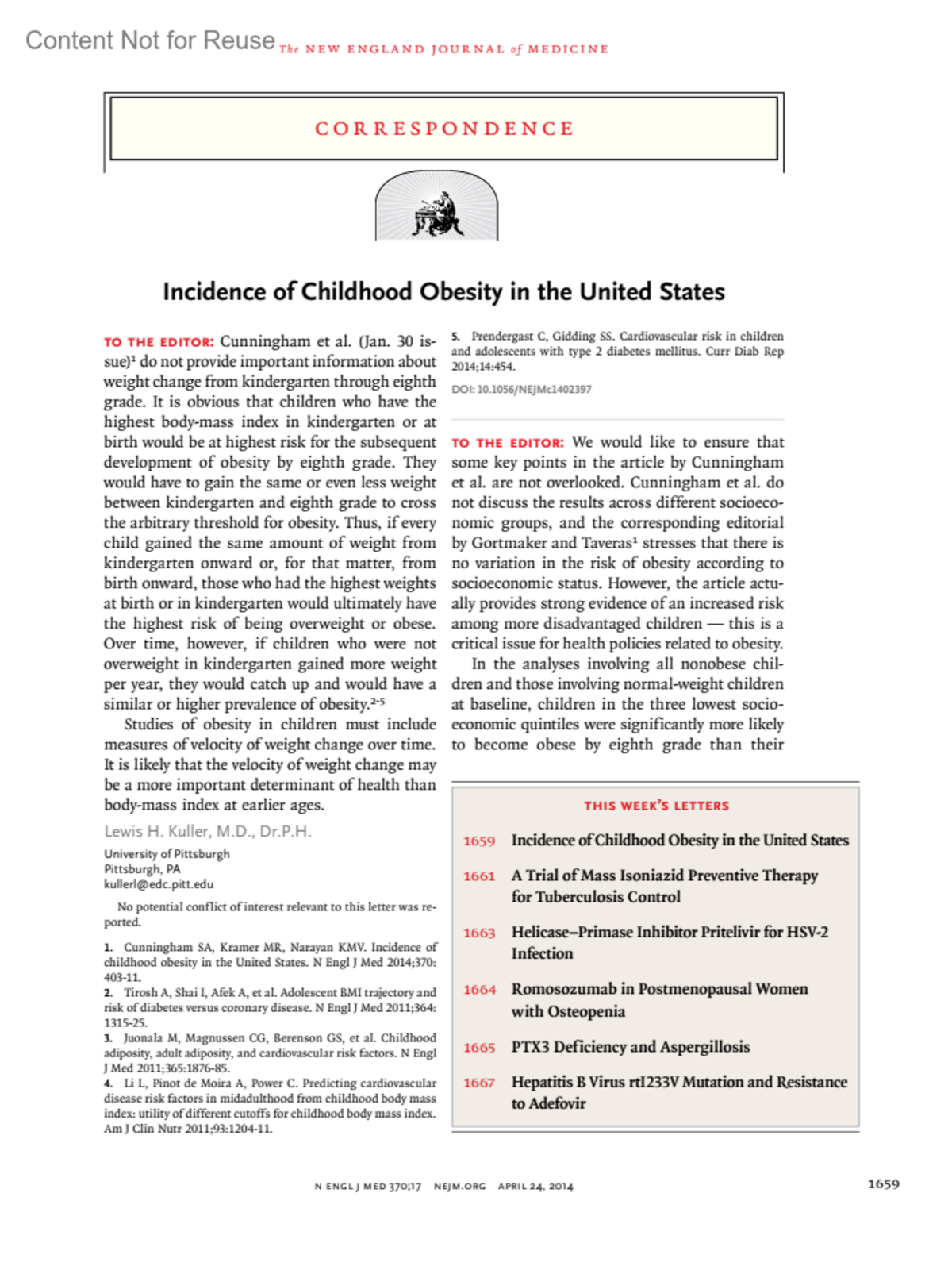 New England Journal of Medicine 370(17):p 1659-1661, April 24, 2014.