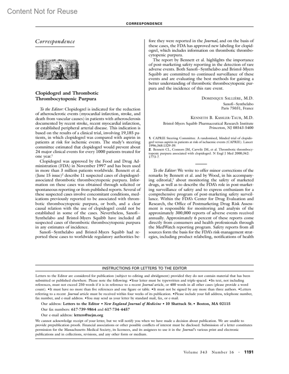 New England Journal of Medicine 343(16):p 1191, October 19, 2000. | DOI: 10.1056/NEJM200010193431612