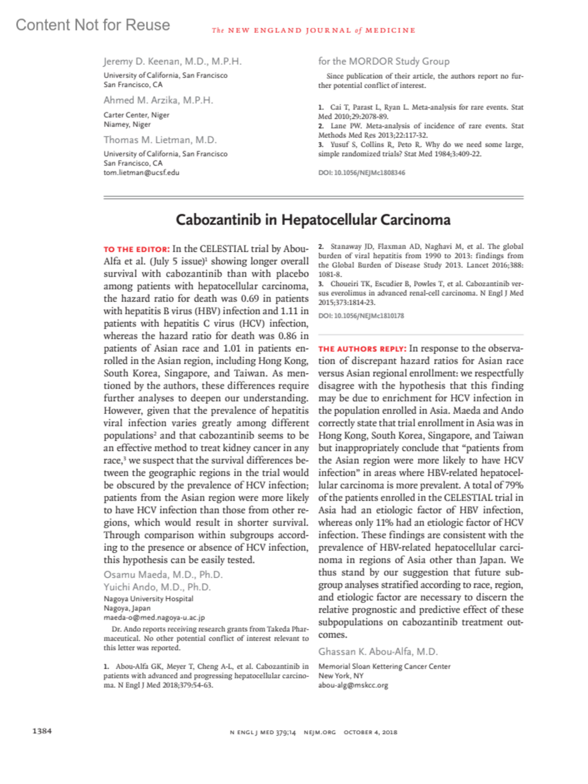 New England Journal of Medicine 379(14):p 1384, October 4, 2018. | DOI: 10.1056/NEJMc1810178