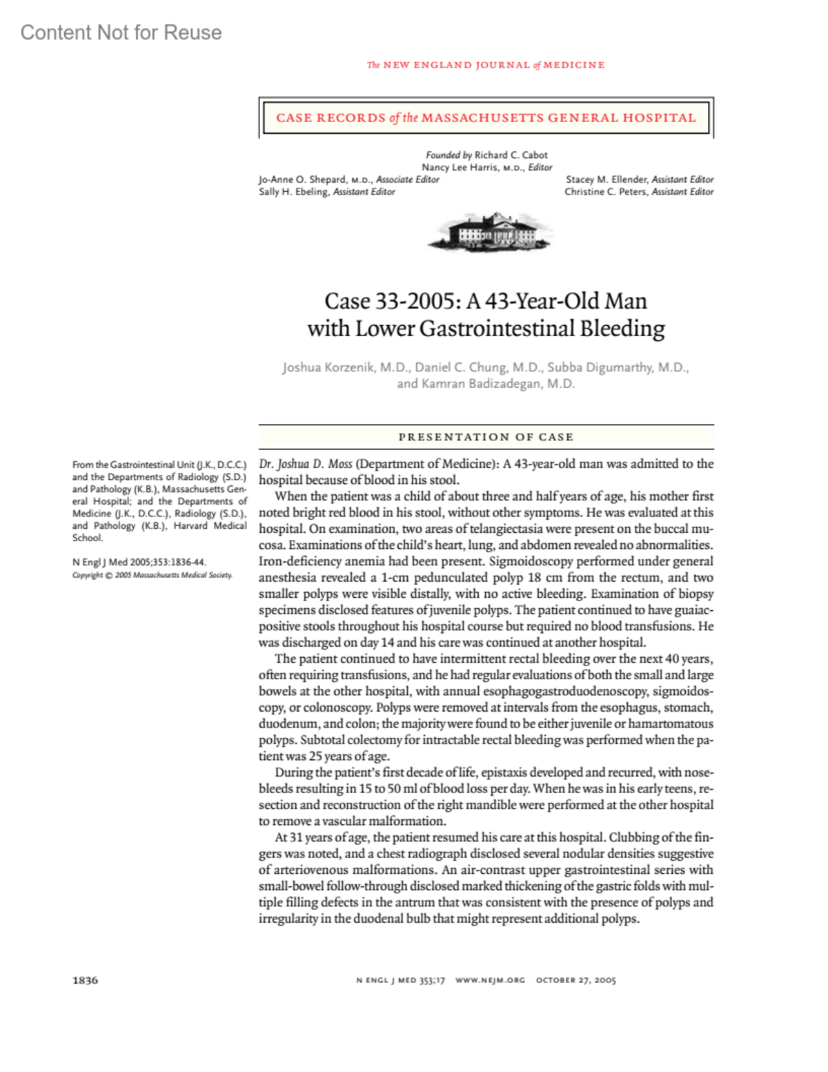 New England Journal of Medicine 353(17):p 1836-1844, October 27, 2005. | DOI: 10.1056/NEJMcpc059028