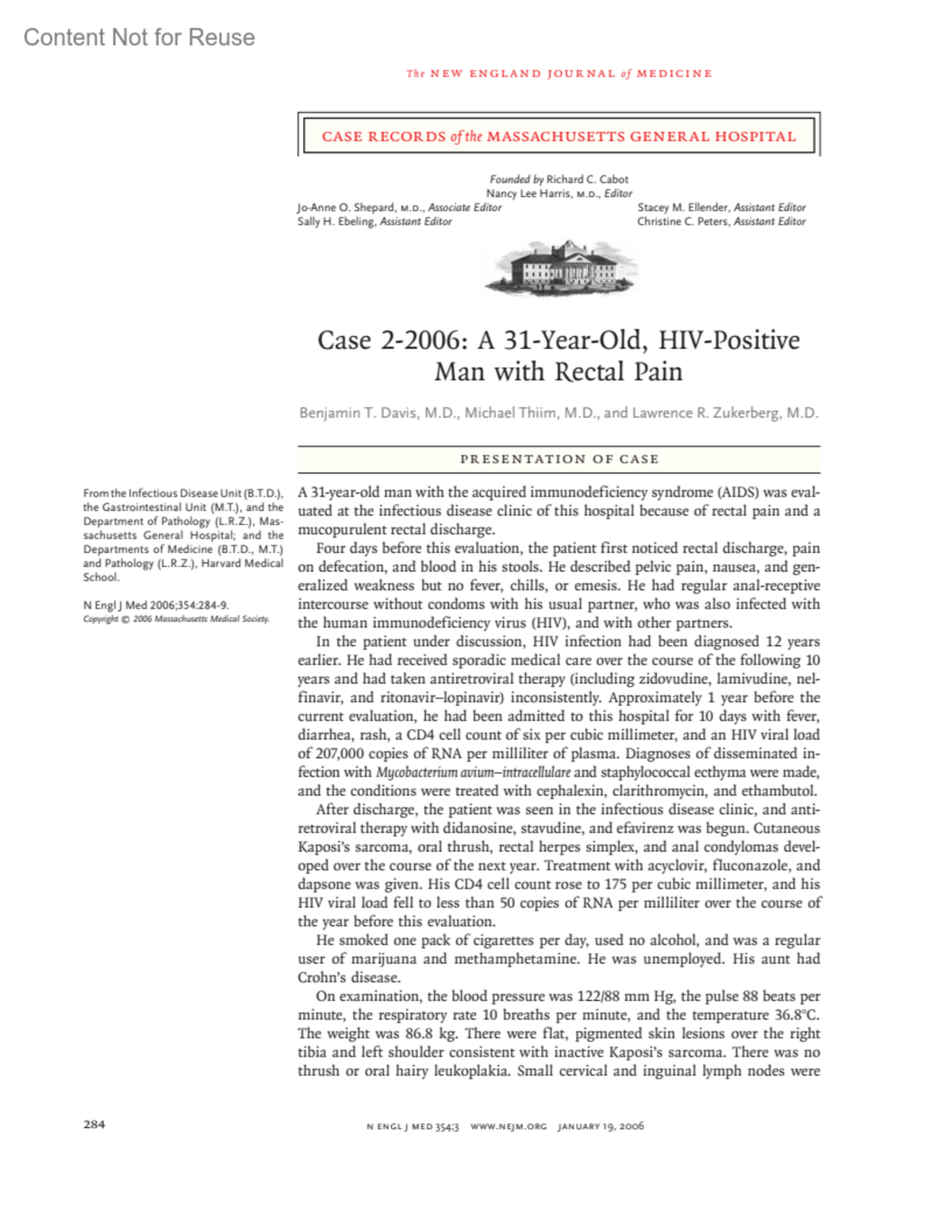 New England Journal of Medicine 354(3):p 284-289, January 19, 2006. | DOI: 10.1056/NEJMcpc059038