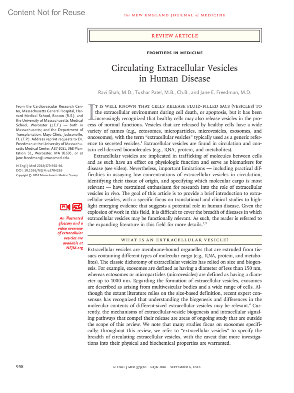 - Freedman, Jane E. M.D.