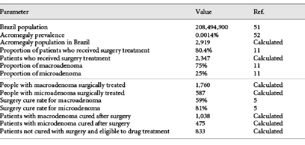 - 40. Fujii RK, Mould JF, Fernandes RA, Furlan F, Manfrin DF. Economic evaluation of pegvisomant for active acromegaly patients who failed available therapies in Brazil—public health care system perspective. Value Health. 2012;15(4):A105–105. 1098-3015