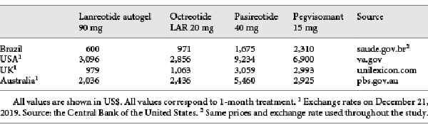 - 39. Valentim J, Passos V, Mataveli F, Calabró A. Cost-effectiveness analysis of somatostatin analogues in the treatment of acromegaly in Brazil. Arq Bras Endocrinol Metabol. 2008;52(9):1452–60. 0004-2730