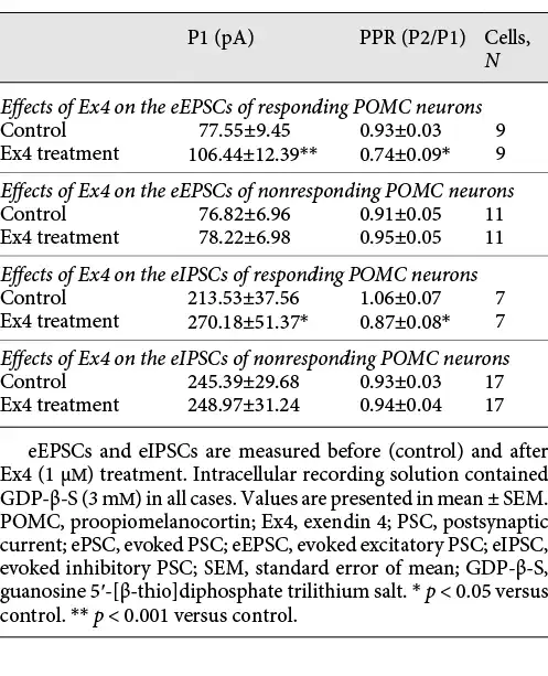 Effect of Ex4 Treatment on the Evoked Potentials of POMC Neurons