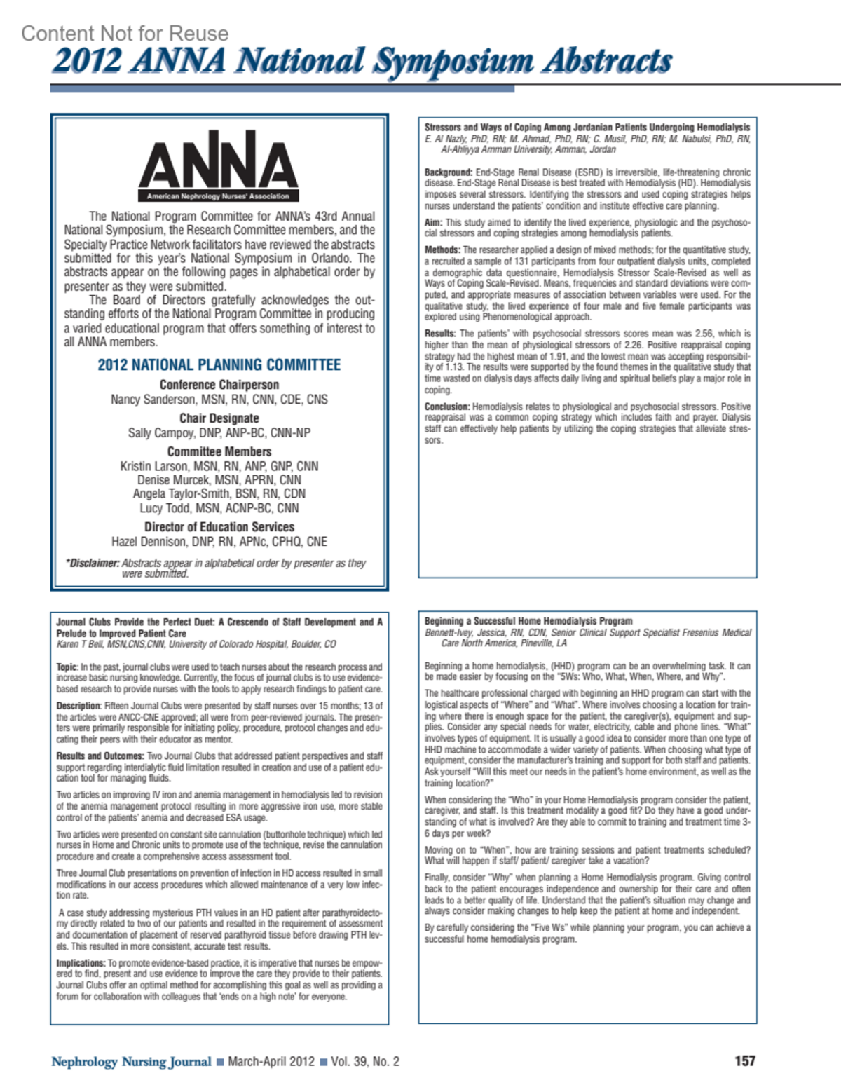 Nephrology Nursing Journal 39(2):p 165, March-April 2012.