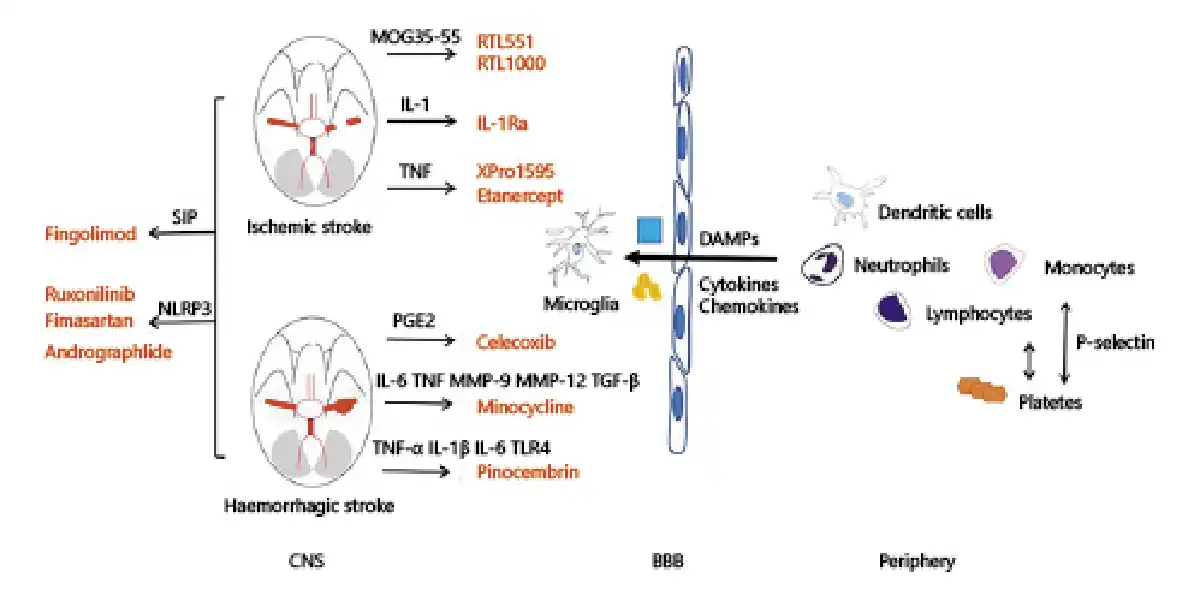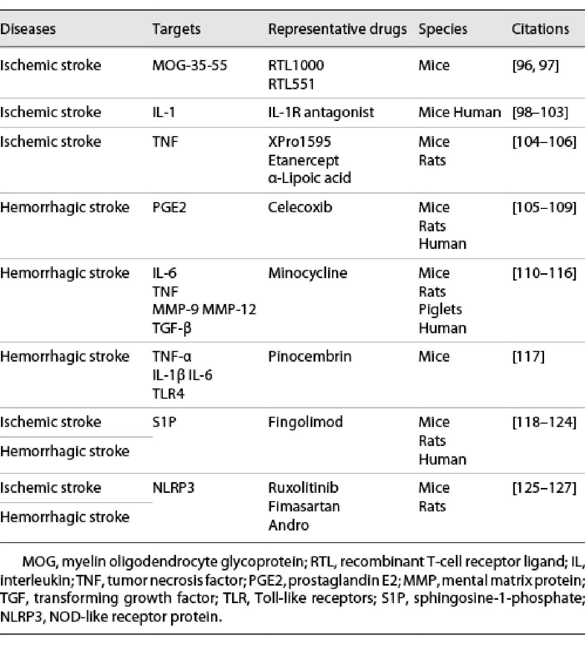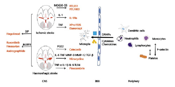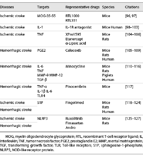 Representative Drugs of Anti-Inflammatory Strategies in Ischemic and Hemorrhagic Stroke