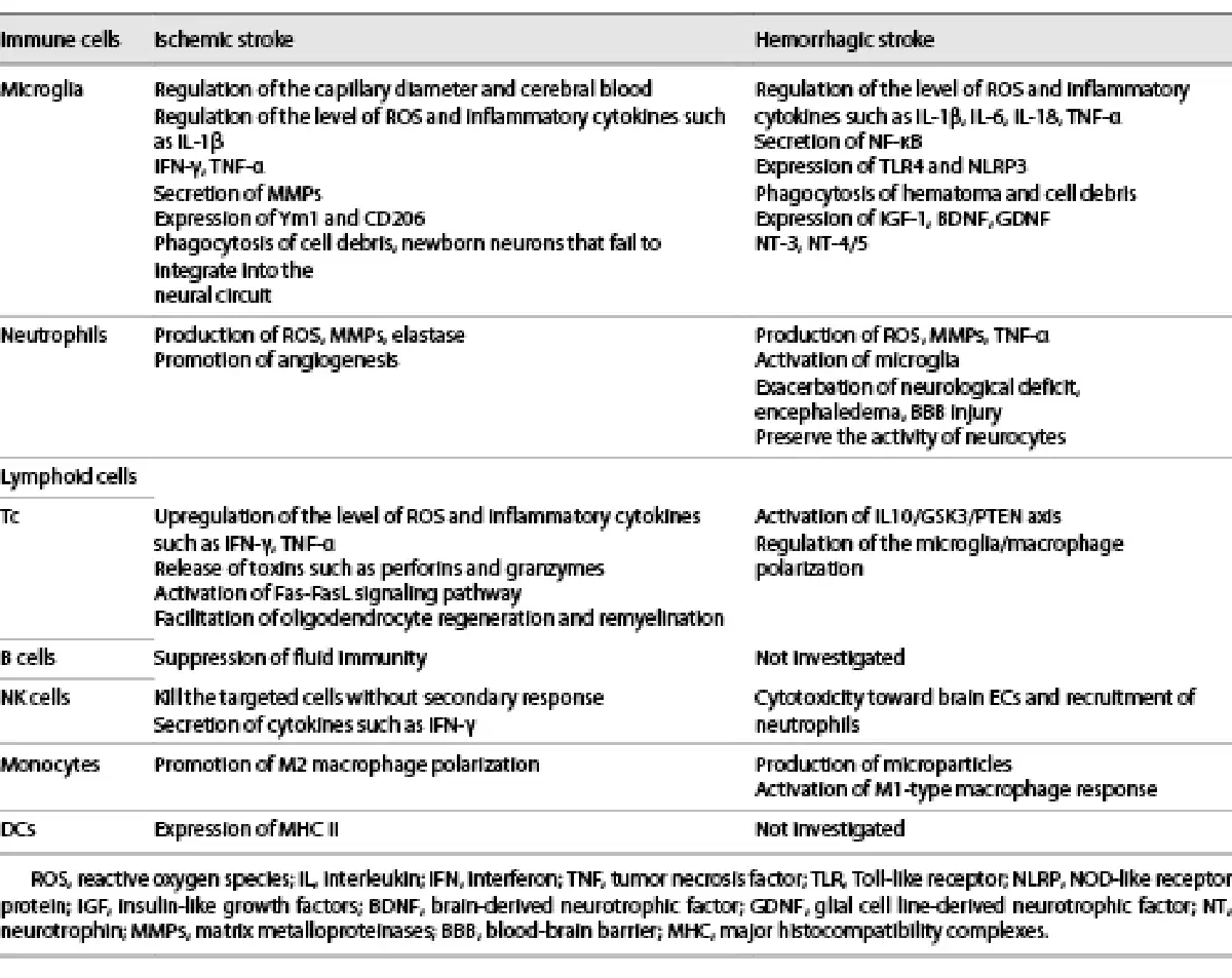 The effects of B lymphoid cells and NK cells after intracerebral injury may be limited owing to their lesser permeability across the BBB [, ]. A recent research suggested that brain-bound NK cells may contribute to perihematomal edema and neurological deficit via cytotoxicity toward brain ECs and recruitment of neutrophils at the early stages of ICH [].