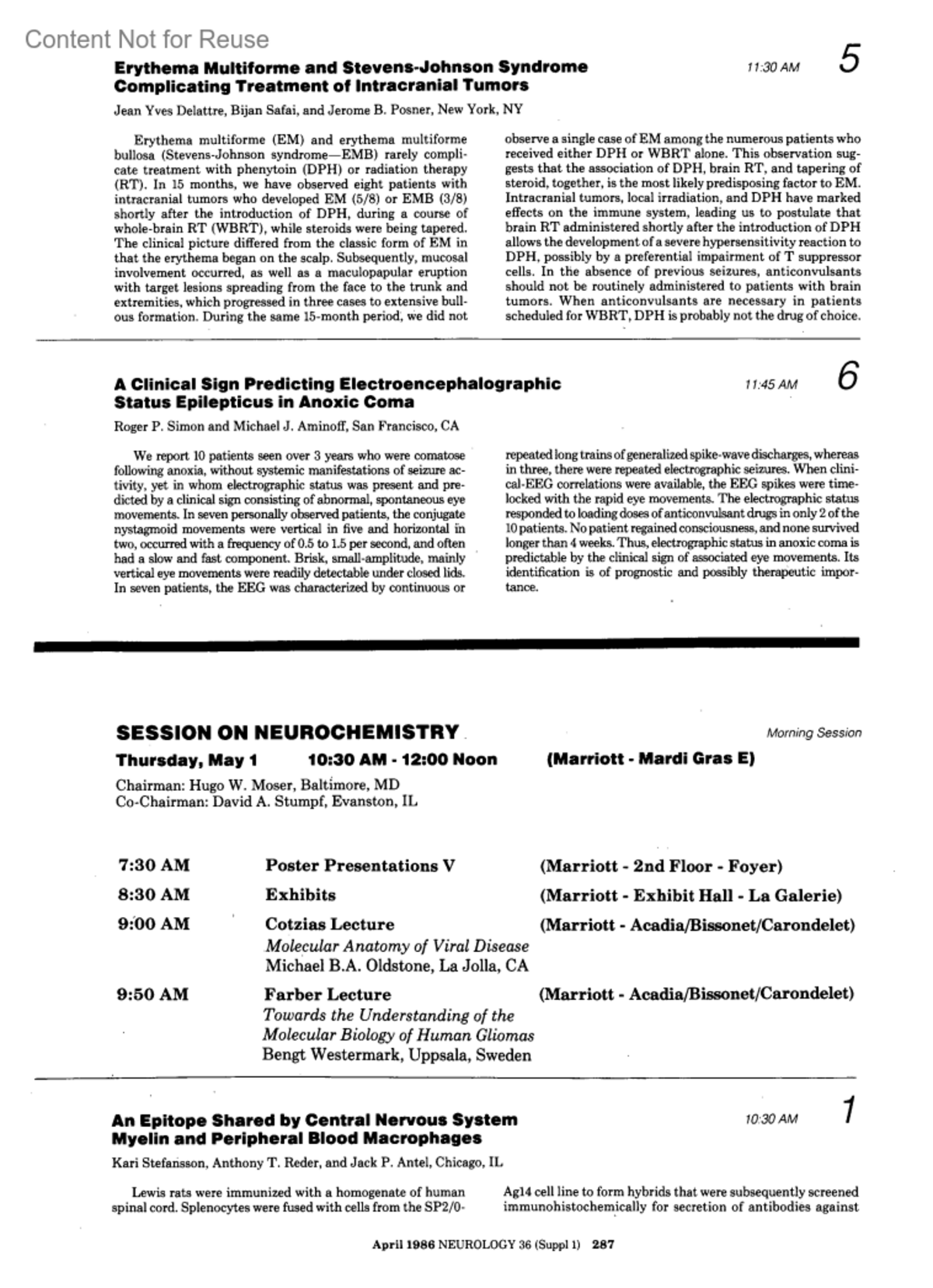 An Epitope Shared by Central Nervous System Myelin and Peripheral Blood Macrophages10:30 AM1Stefansson, KariReder, Anthony T.Antel, Jack P.Author informationChicago, ILNeurology 36(4):p 287-288, April 1986.Copyright © 1986 American Academy of Neurology