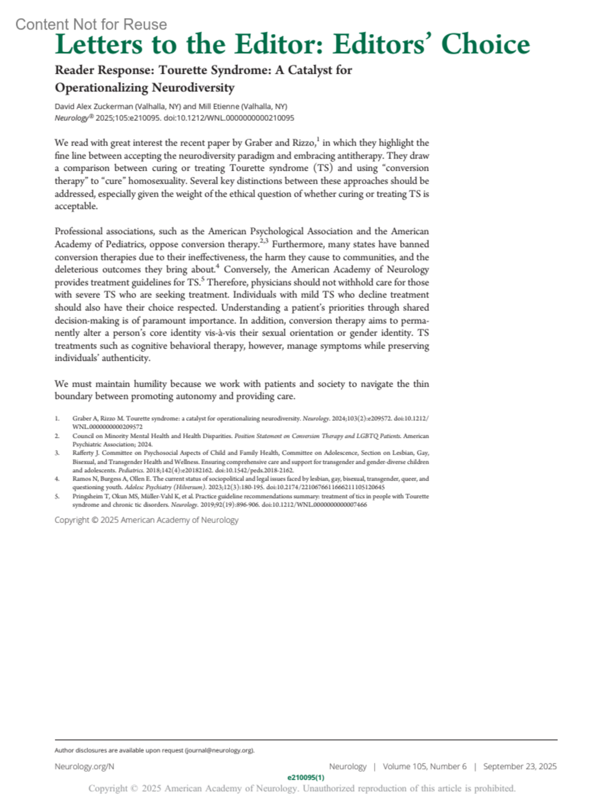 Author Response: Tourette Syndrome: A Catalyst for Operationalizing Neurodiversity