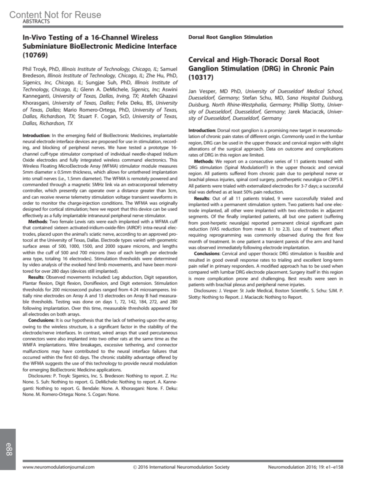 Neuromodulation 19(3):p e88, April 2016.