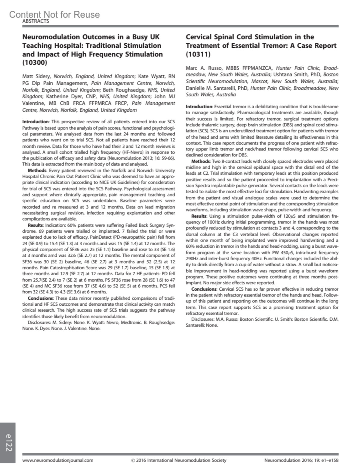 Neuromodulation 19(3):p e122, April 2016.