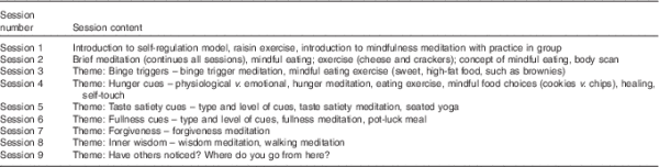 An example of how these elements were delivered in a mindfulness intervention is given in Table 3 from a nine-session MB-EAT programme for binge eating().