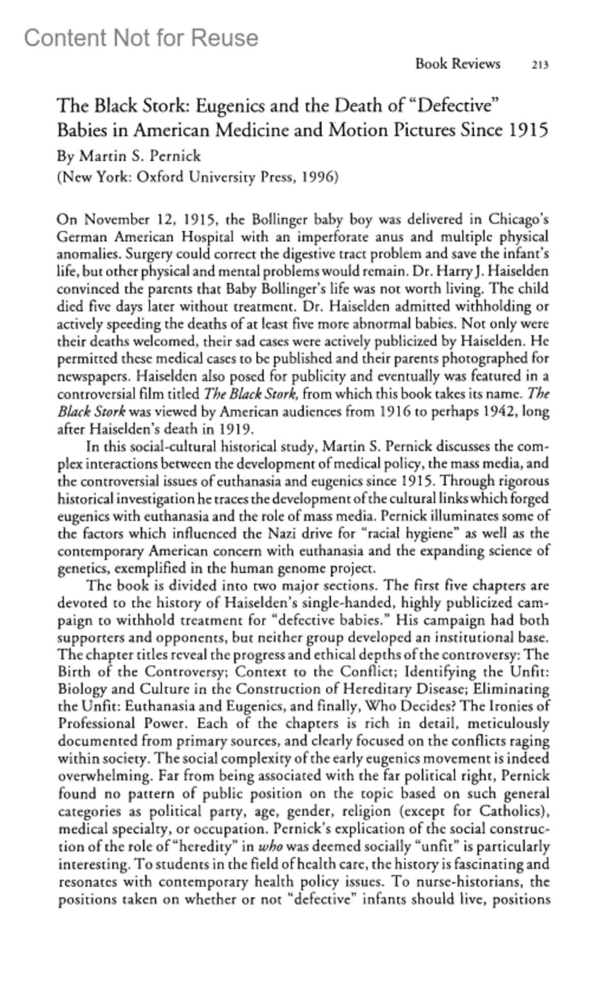Eugenics and the Death of “Defective” Babies in American Medicine and Motion Pictures Since 1915