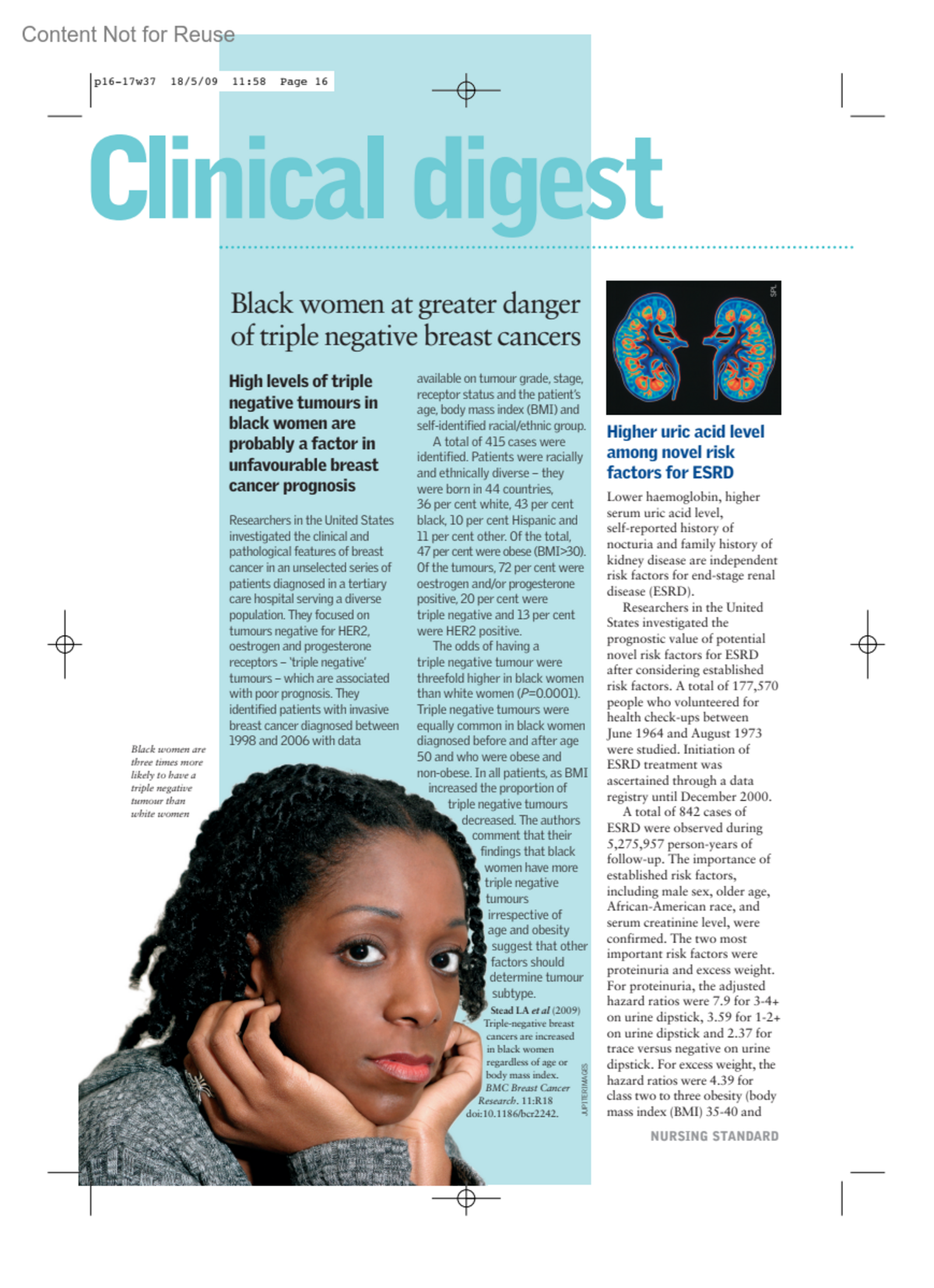 Higher uric acid level among novel risk factors for ESRDNursing Standard 23(37):p 16-17, May 20, 2009.Copyright © Copyright 2009 RCN Publishing Company Ltd.