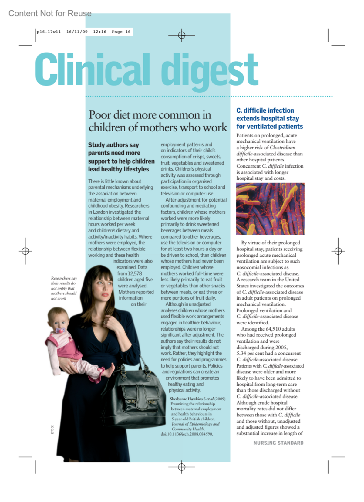 C. difficile infection extends hospital stay for ventilated patientsNursing Standard 24(11):p 16-17, November 18, 2009.Copyright © Copyright 2009 RCN Publishing Company Ltd.