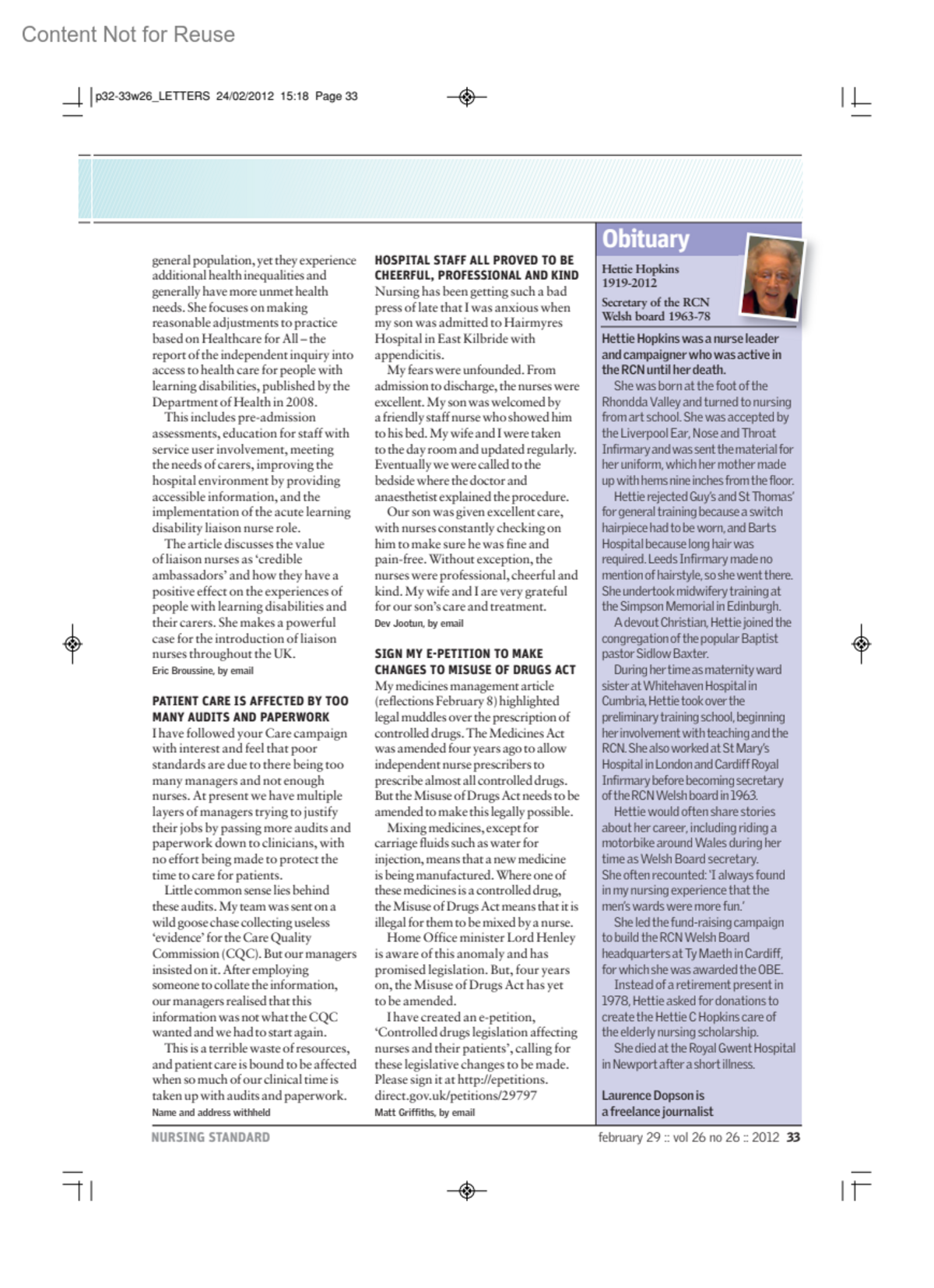PATIENT CARE IS AFFECTED BY TOO MANY AUDITS AND PAPERWORKAuthor informationPlease keep letters to a maximum of 150 words, and include your full name, address and a daytime telephone numberNursing Standard 26(26):p 33, February 29, 2012.Copyright © Copyright 2012 RCN Publishing Company Ltd.