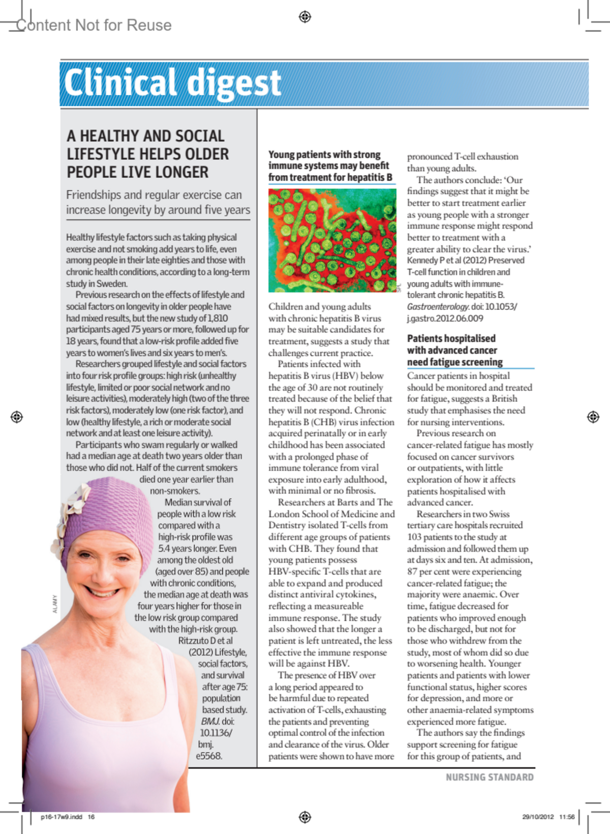 Patients hospitalised with advanced cancer need fatigue screeningNursing Standard 27(9):p 16-17, October 31, 2012.Copyright © Copyright 2012 RCN Publishing Company Ltd.