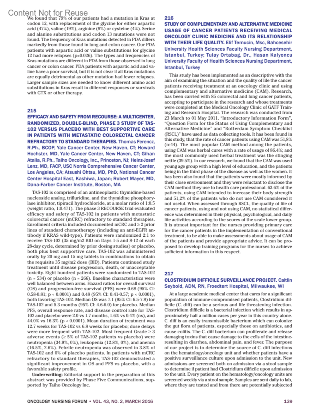 Oncology Nursing Forum 43(2):p 139, March 2016.