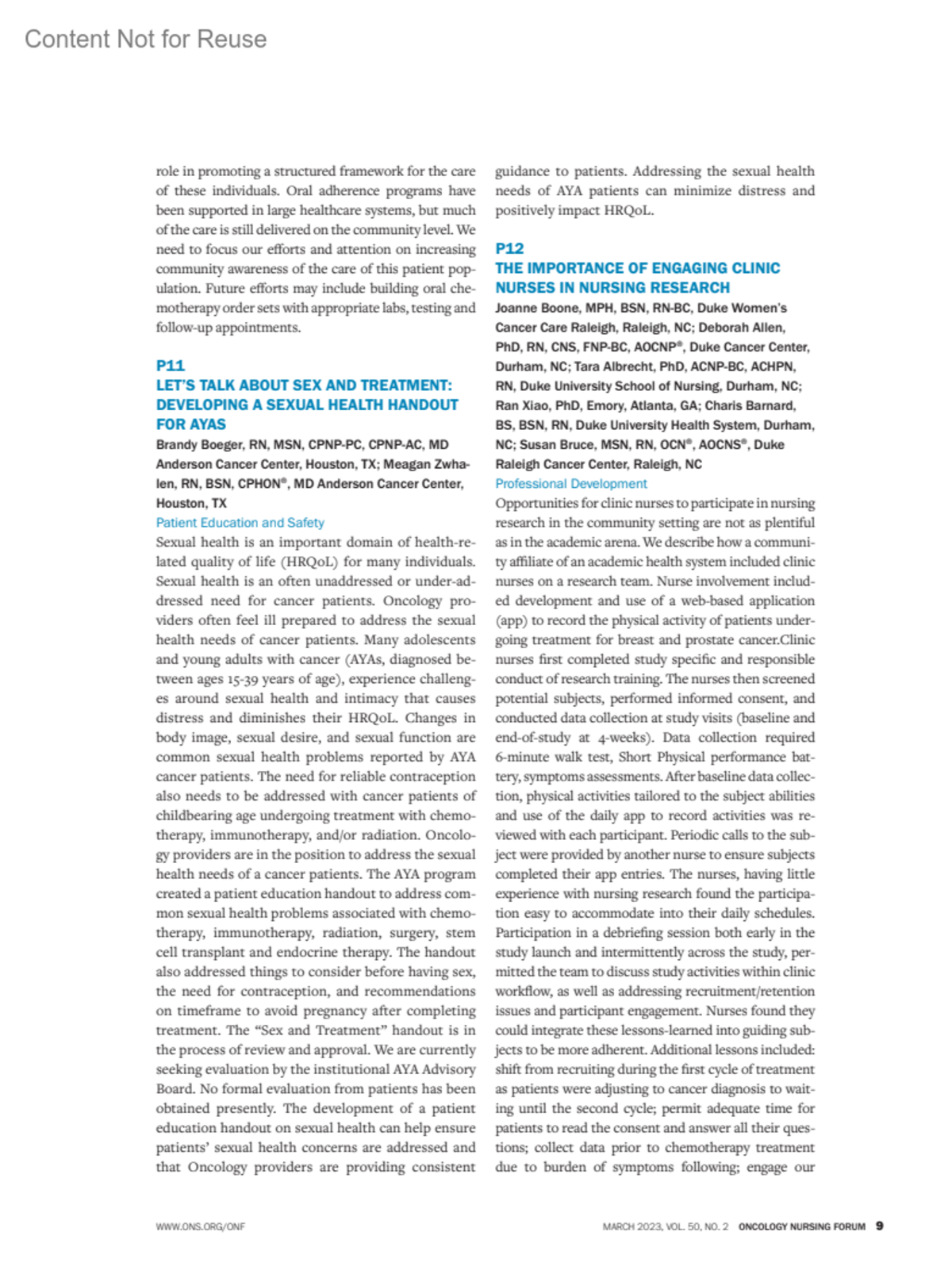 Oncology Nursing Forum 50(2):p 9-10, March 2023.