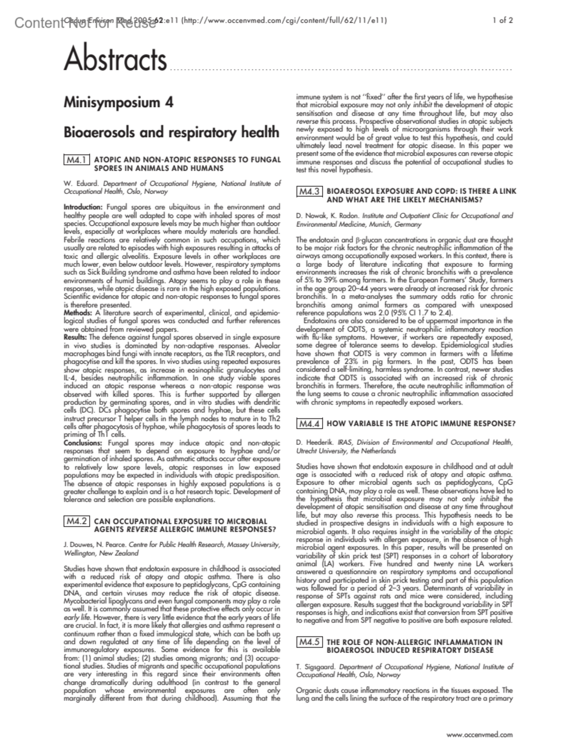 M4.3 BIOAEROSOL EXPOSURE AND COPD: IS THERE A LINK AND WHAT ARE THE LIKELY MECHANISMS?Nowak, D.Radon, K.Author informationInstitute and Outpatient Clinic for Occupational and Environmental Medicine, Munich, GermanyOccupational and Environmental Medicine 62(11):p e11, November 2005.Copyright © 2005 BMJ Publishing Group Ltd