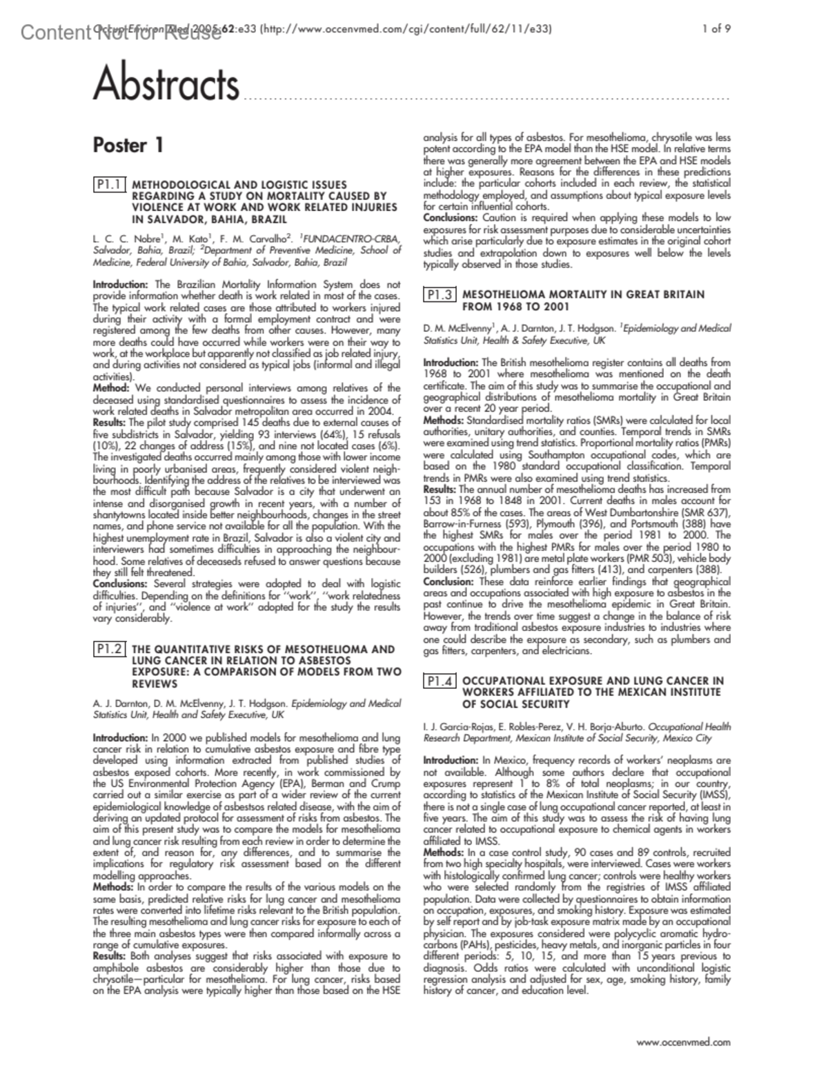Occupational and Environmental Medicine 62(11):p e33, November 2005.