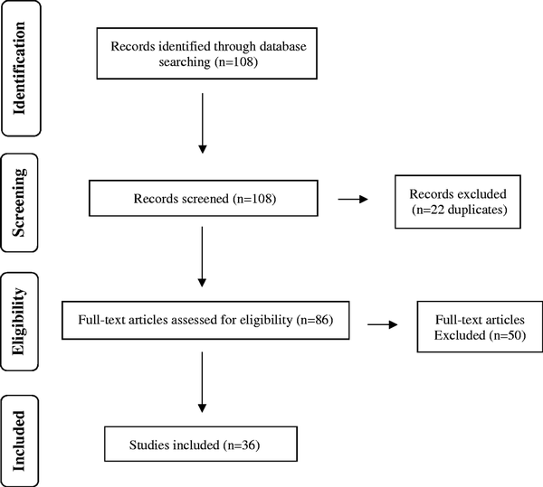 A review of the literature was conducted, ranging from 1987 to September 2020, using the databases PsychMed, Scopus CINHAL and Google Scholar. This review was carried out using the following keywords: adolescent OR teen OR teenager AND grieving OR grief OR bereavement AND parental death. Retrieved articles were included if their participant populations included adolescents who had experienced parental loss during their adolescent years only. The selection of articles examined and retained was done by reading the titles and abstracts. The potentially relevant articles were then retrieved in full text, and further assessed for inclusion. References of included studies were then also reviewed to identify additional studies. After removing duplicates and excluding articles not pertaining to adolescents bereaved due to parental death, the search resulted in a final count of 36 articles that met criteria for inclusion applicable this topic (see Figure1). Details about each article are summarized in Table 1.