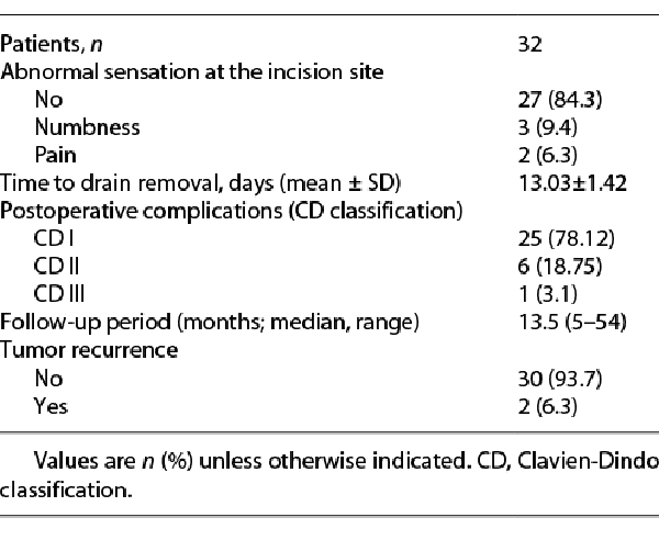 An abdominal binder was applied to all patients postoperatively, for 3–6 months, and prophylactic antibiotics were also given postoperatively for 7 days. Patients started oral intake when the bowel functions returned. Drains were removed when their discharge was <20 mL/day for 2 successive days.
