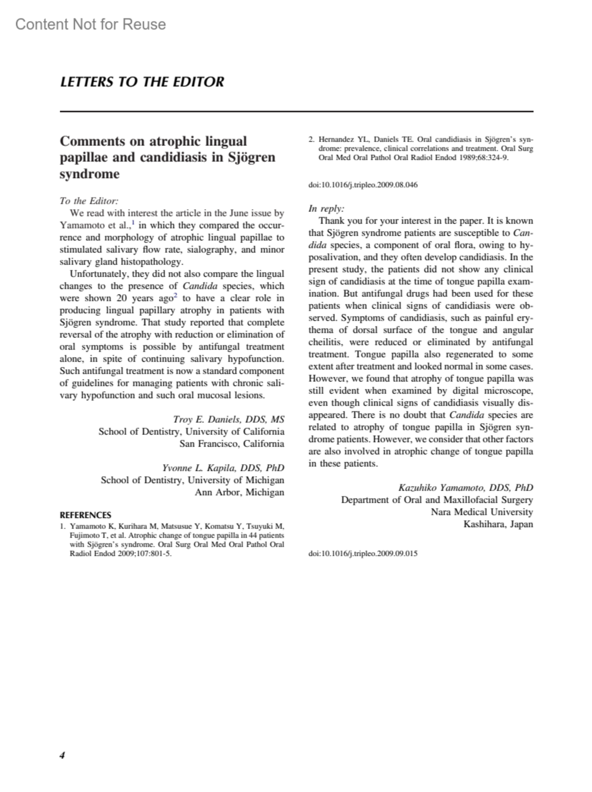 Comments on atrophic lingual papillae and candidiasis in Sjögren syndrome