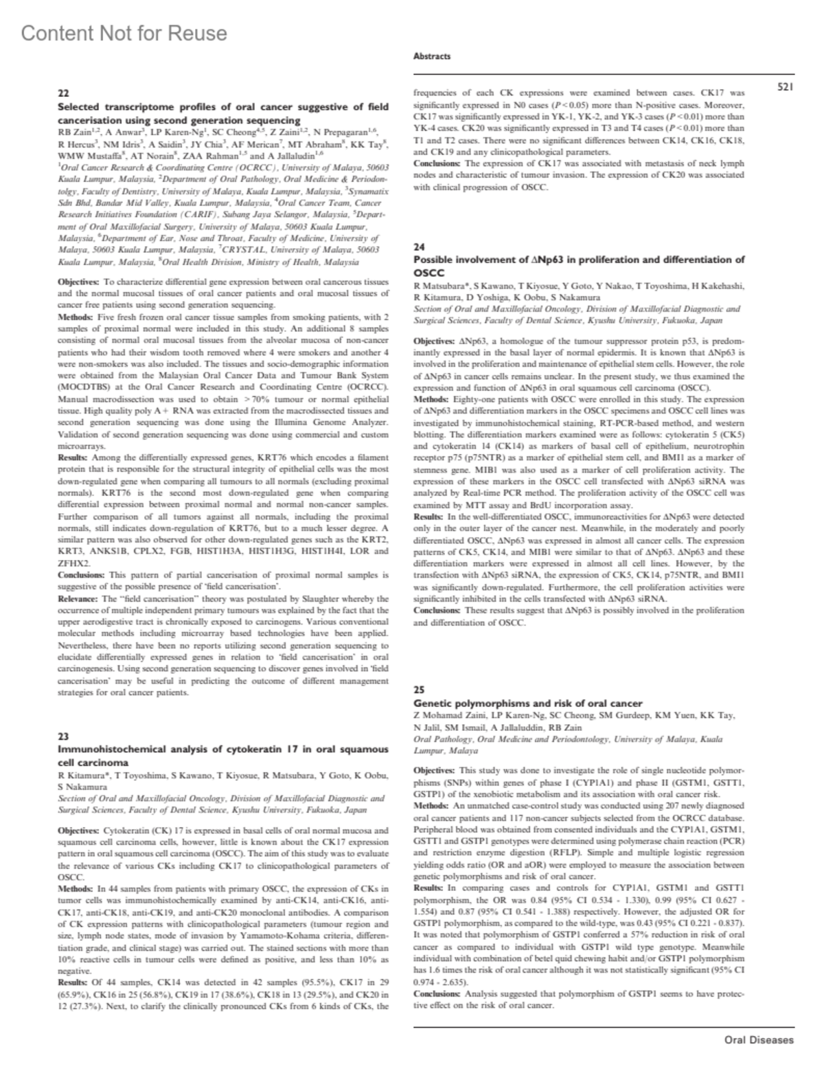 Selected transcriptome profiles of oral cancer suggestive of field cancerisation using second generation sequencing