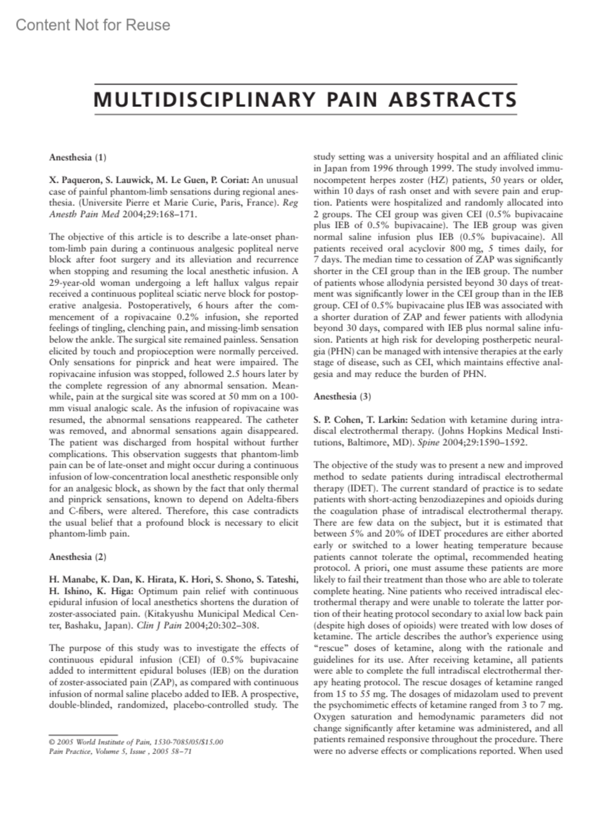 Pain Practice 5(1):p 67, March 2005.