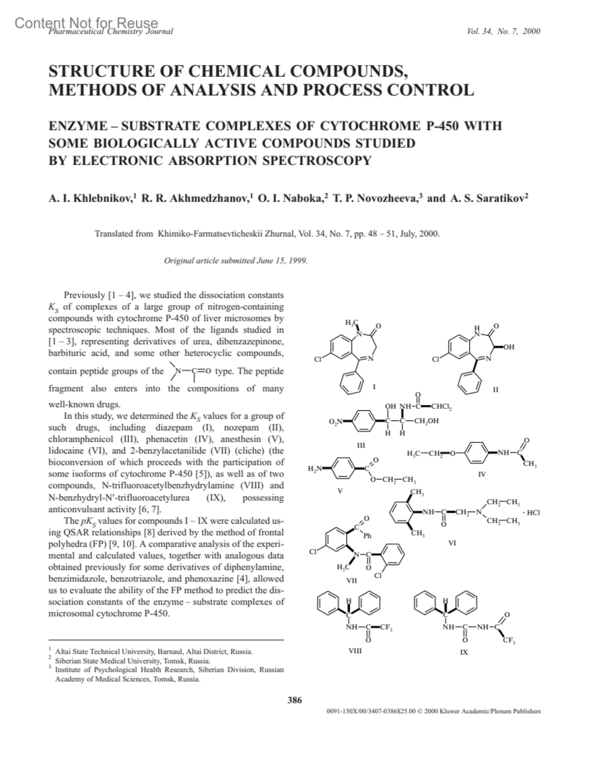 Pharmaceutical Chemistry Journal 34(7):p 386-389, July 2000.