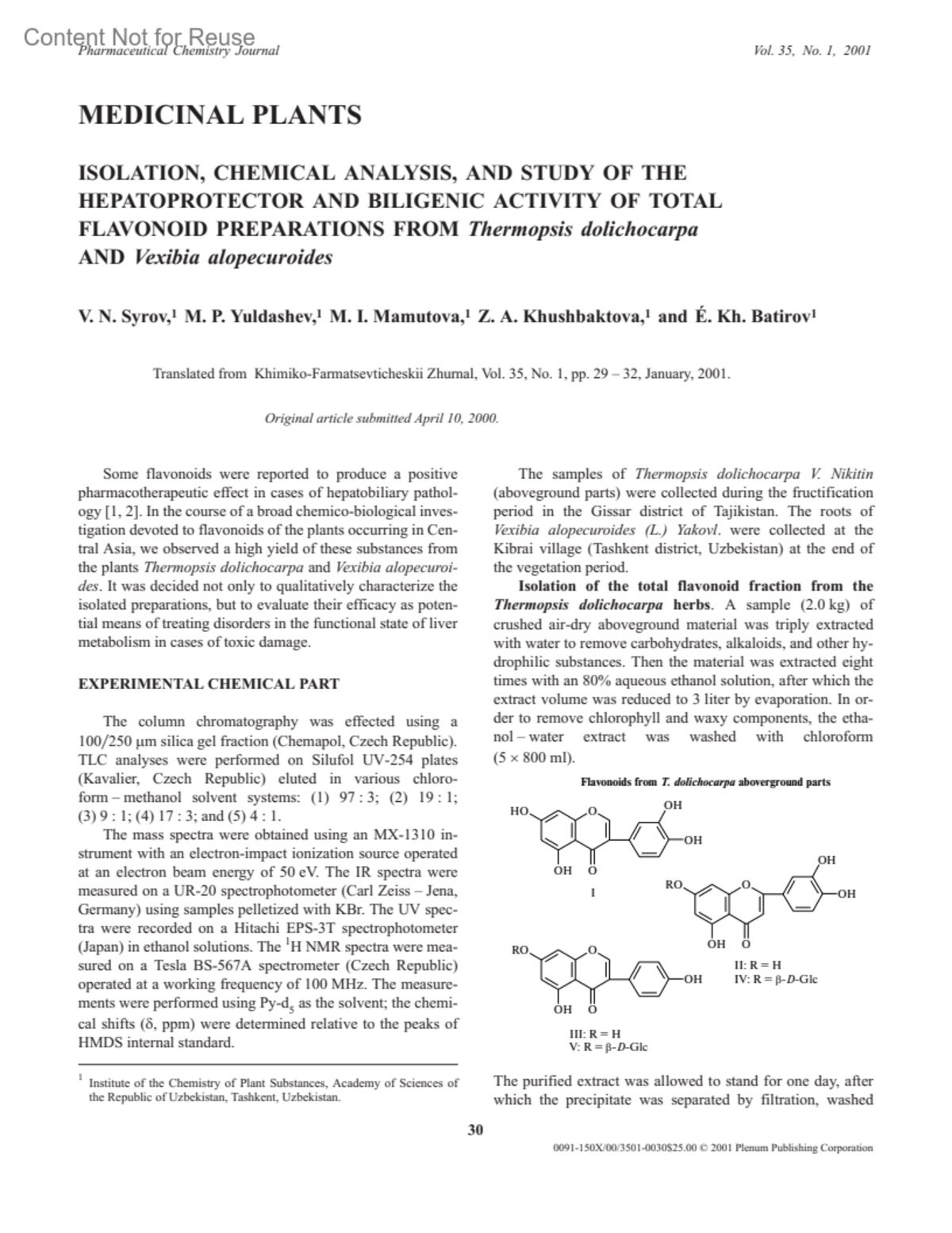 Pharmaceutical Chemistry Journal 35(1):p 30-34, January 2001.