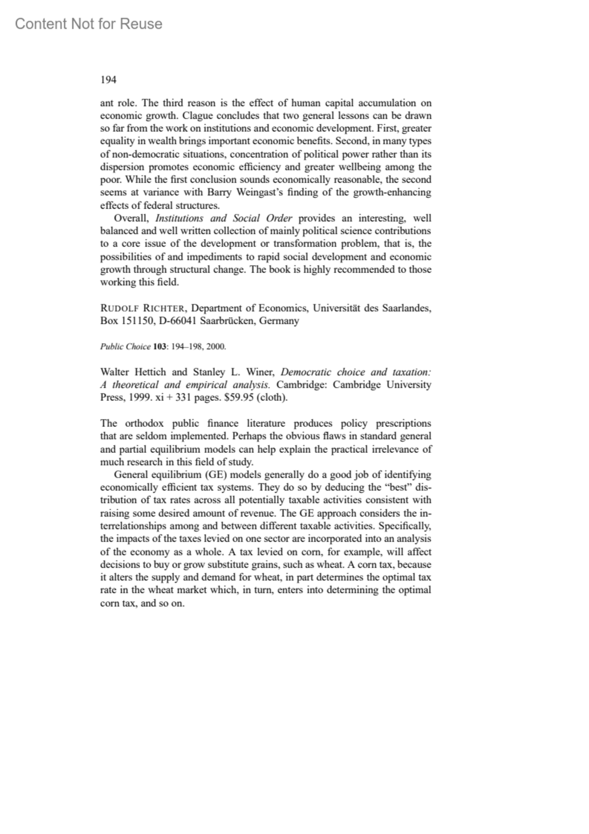 Democratic choice and taxationA theoretical and empirical analysisCambridge: Cambridge University Press, 1999. xi + 331 pages. $59.95 (cloth).McGarrity, Joseph P.Author informationDepartment of Economics, University of Central Arkansas, Conway, AR 72035, U.S.A.Public Choice 103(2):p 194-198, 2000.Copyright ©2000 Kluwer Academic Publishers