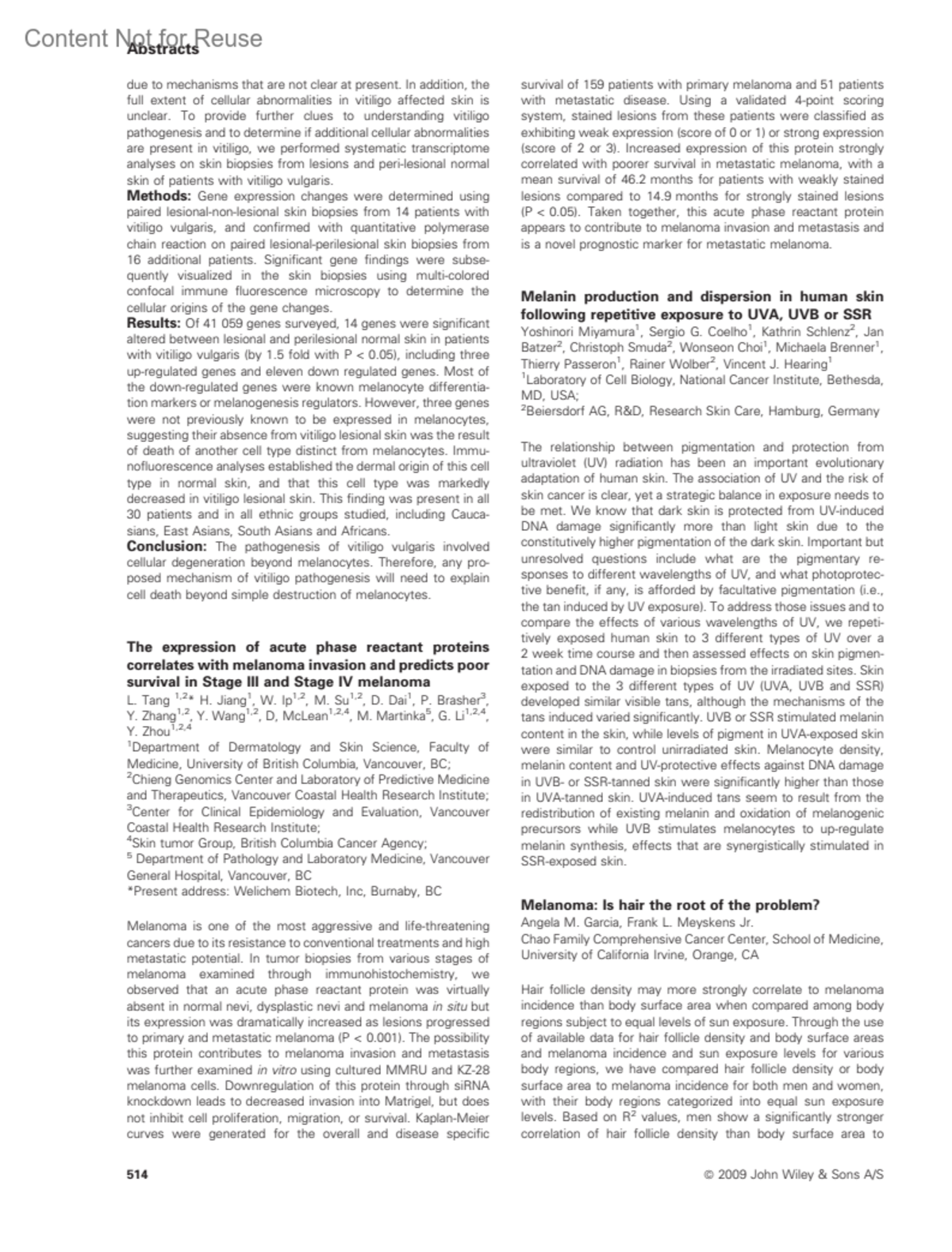 MelanomaIs hair the root of the problem?Garcia, Angela M.Meyskens, Frank L. Jr.Author informationChao Family Comprehensive Cancer Center, School of Medicine, University of California Irvine, Orange, CAPigment Cell & Melanoma Research 22(4):p 514-515, August 2009.Copyright © 2009 Blackwell Publishing Ltd.