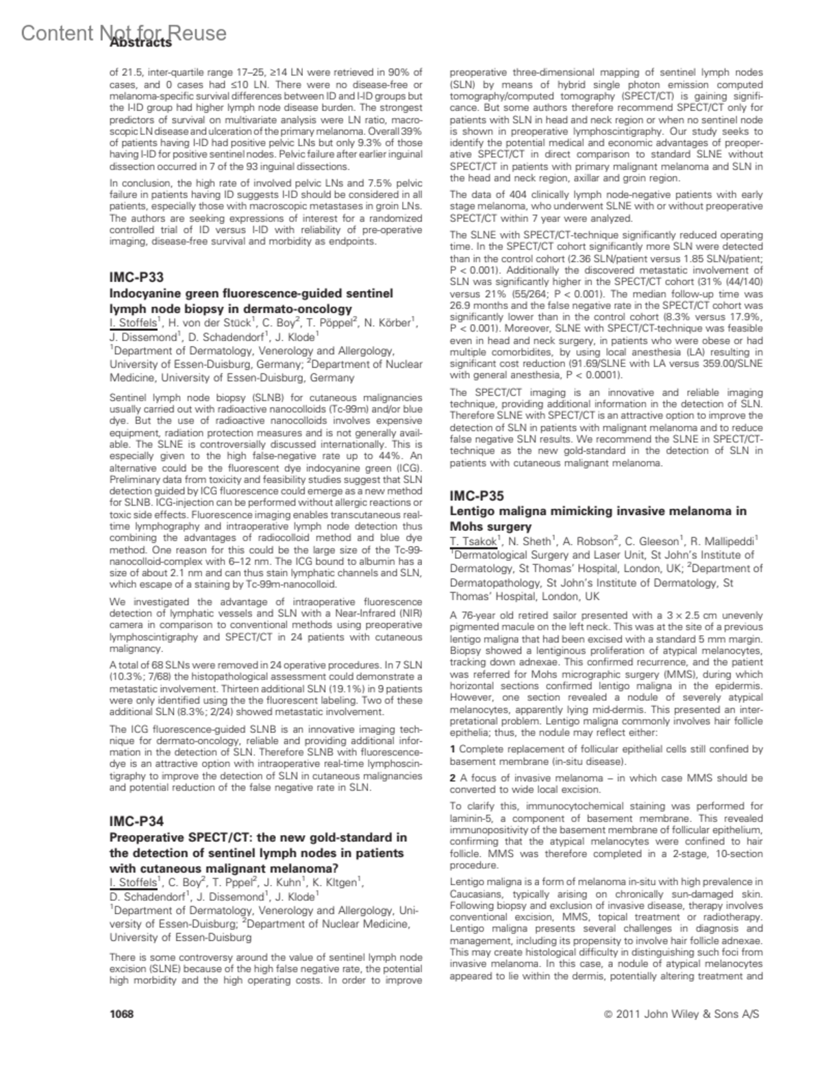 Pigment Cell & Melanoma Research 24(5):p 1068, October 2011.
