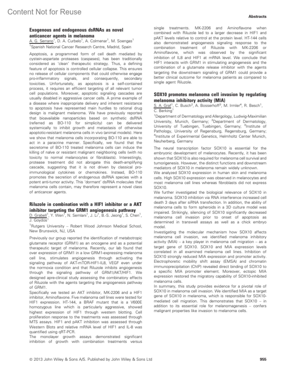 Pigment Cell & Melanoma Research 26(6):p 955, November 2013.