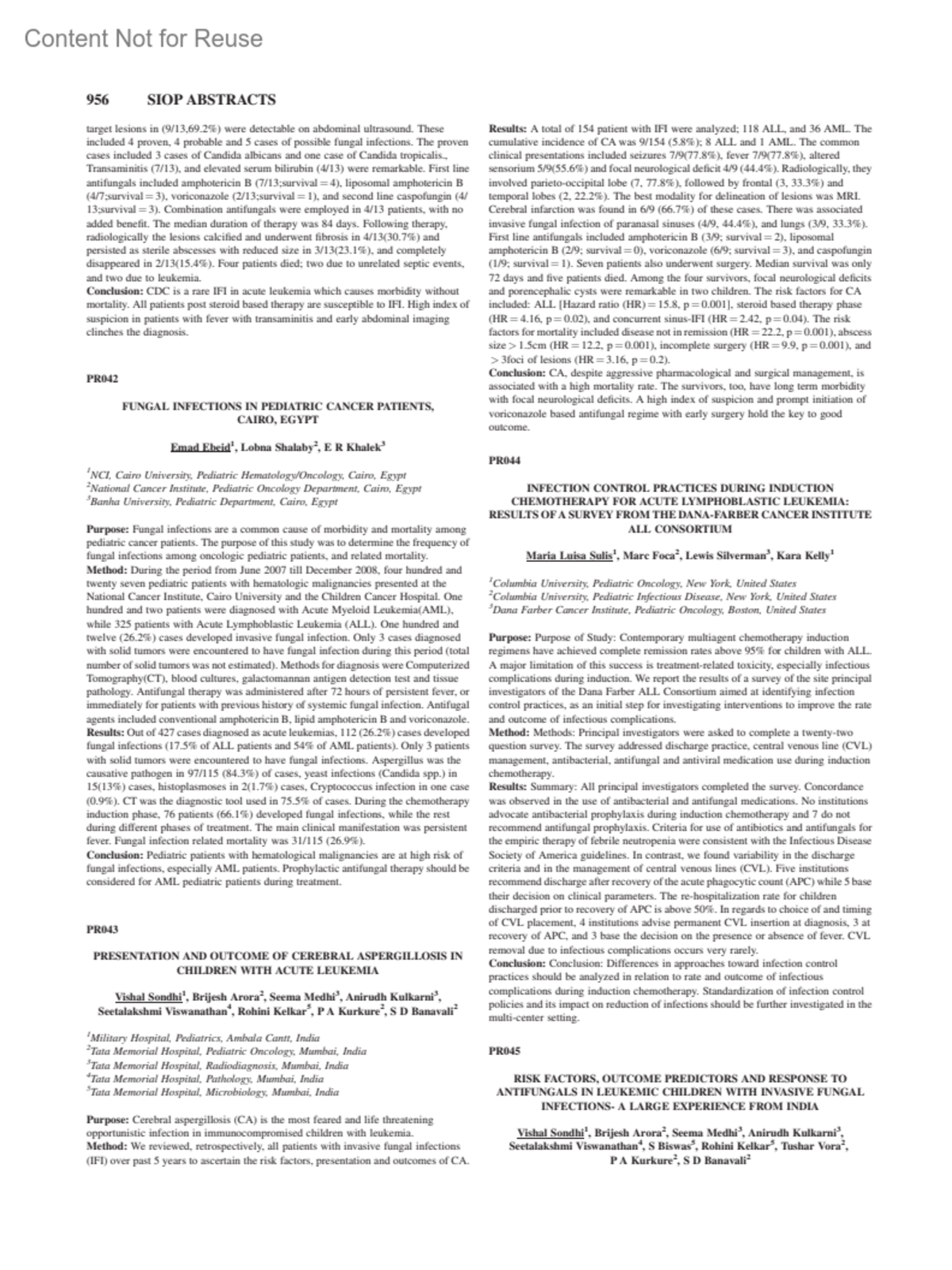 Pediatric Blood & Cancer 55(5):p 956, November 2010.