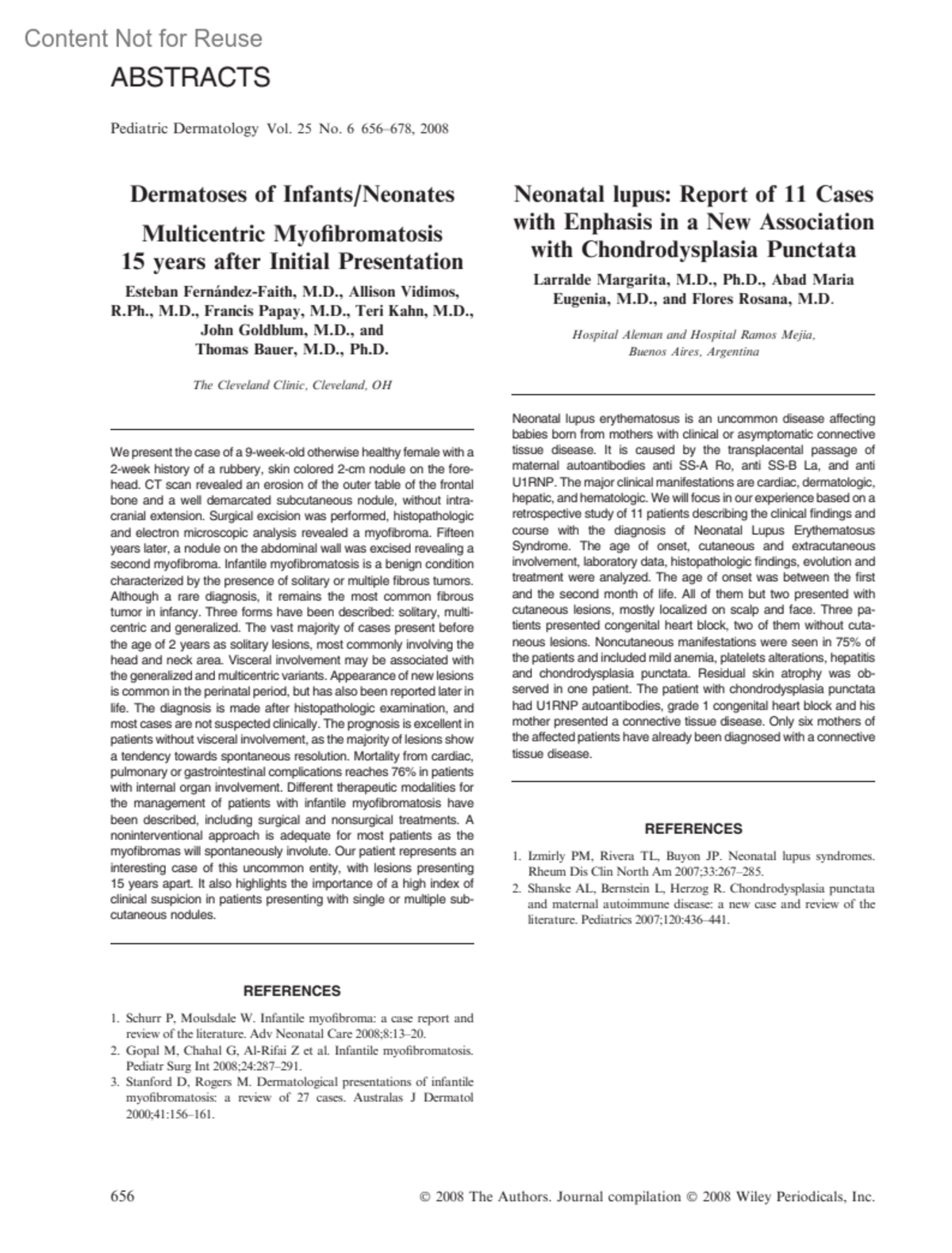 Serum Sickness-Like Reaction in ChildrenA Retrospective ReviewPatel, Sapna M.D.Mancini, Anthony J. M.D.Author informationNorthwestern University Feinberg School of Medicine, Chicago, ILPediatric Dermatology 25(6):p 666-667, November-December 2008.Copyright © 2008 Blackwell Publishing Ltd.