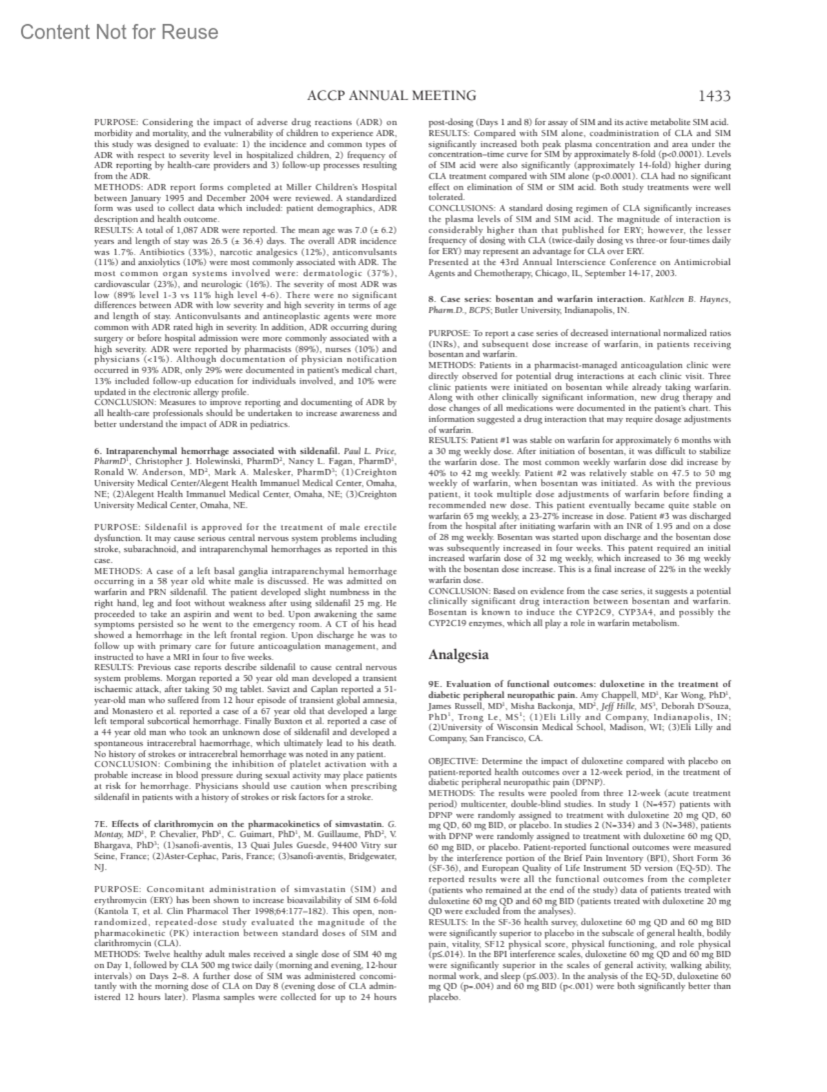 Pharmacotherapy: The Journal Of Human Pharmacology & Drug Therapy 25(10):p 1433, October 2005.