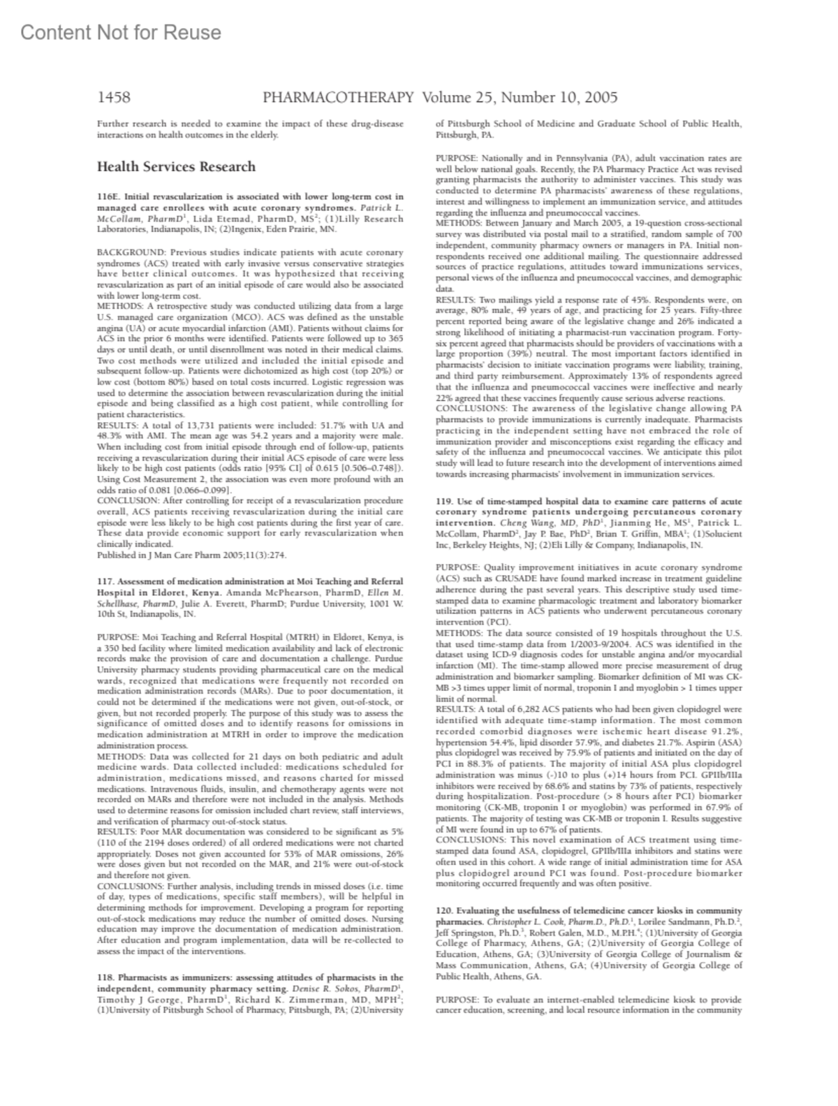Pharmacotherapy: The Journal Of Human Pharmacology & Drug Therapy 25(10):p 1458, October 2005.